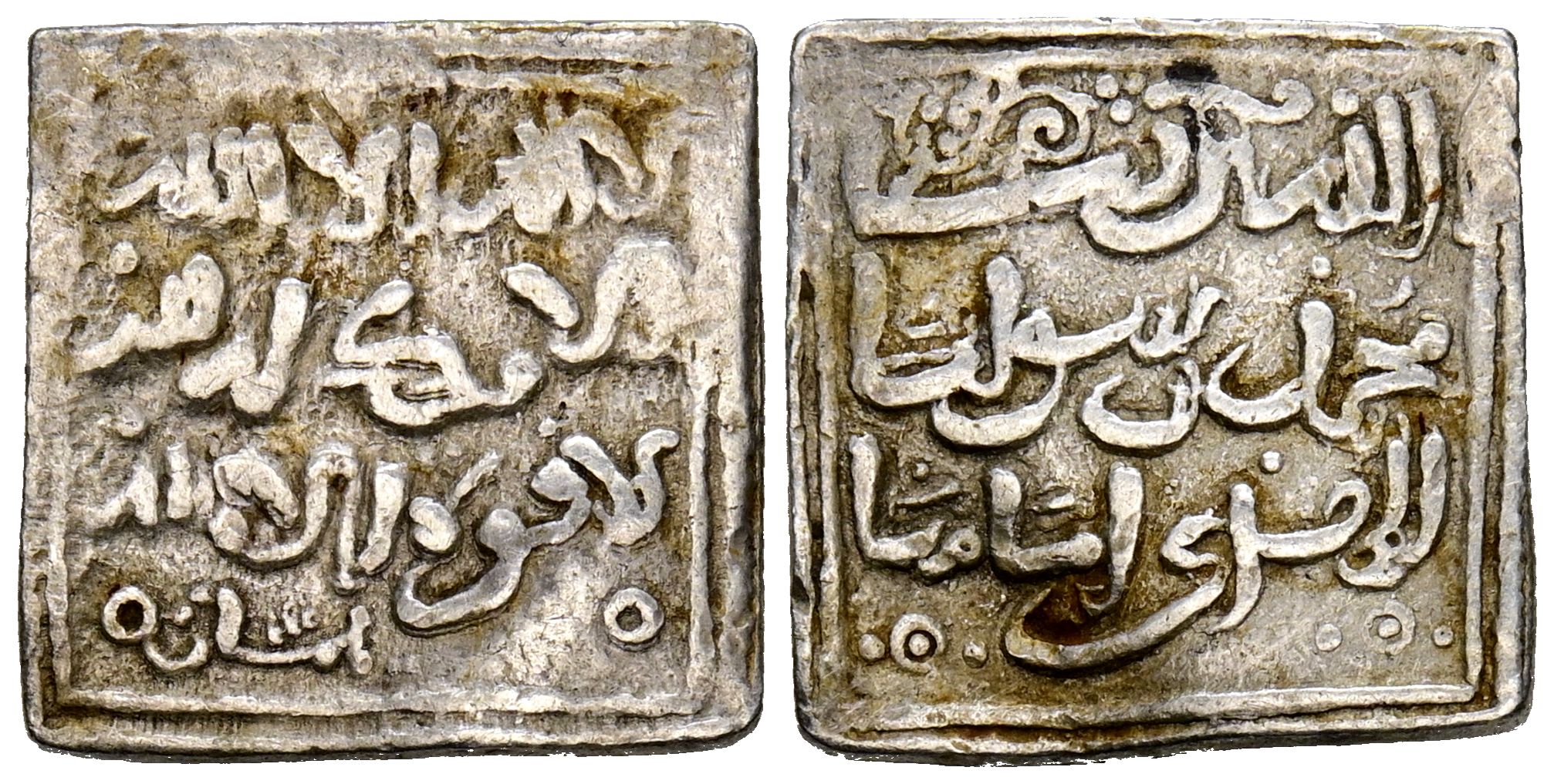 ALMOHADES. Anónimo a nombre del imán Al-Mahdi. Dirham. (Ar. 1,54g/14mm). Tlemecen / تلمسان. (Vives 2101; Hohertz 614a). MBC. Alabeada.