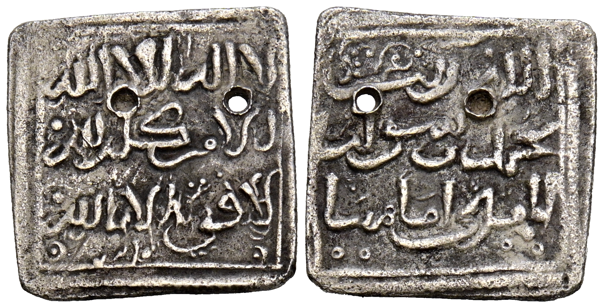 ALMOHADES. Anónimo a nombre del imán Al-Mahdi. Dirham. (Ar. 1,50g/14mm). Fez / فاس. (Vives 2107; Hazard 1095). MBC-. Dos perforaciones.