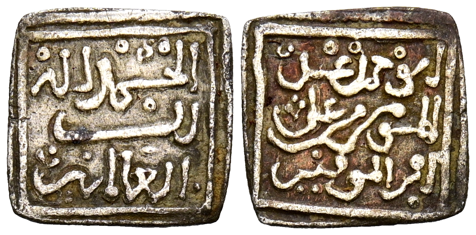 ALMOHADES. 'Abd al-Mu'min (524-558H). 1/2 Dirham. (Ar. 0,48g/11mm). S/D. (Vives 2113; Hazard 1069; Hohertz 550b). El escaso peso de la pieza en conjunto con su estilo tosco, son rasgos indicativos de un posible origen falsario africano. MBC.