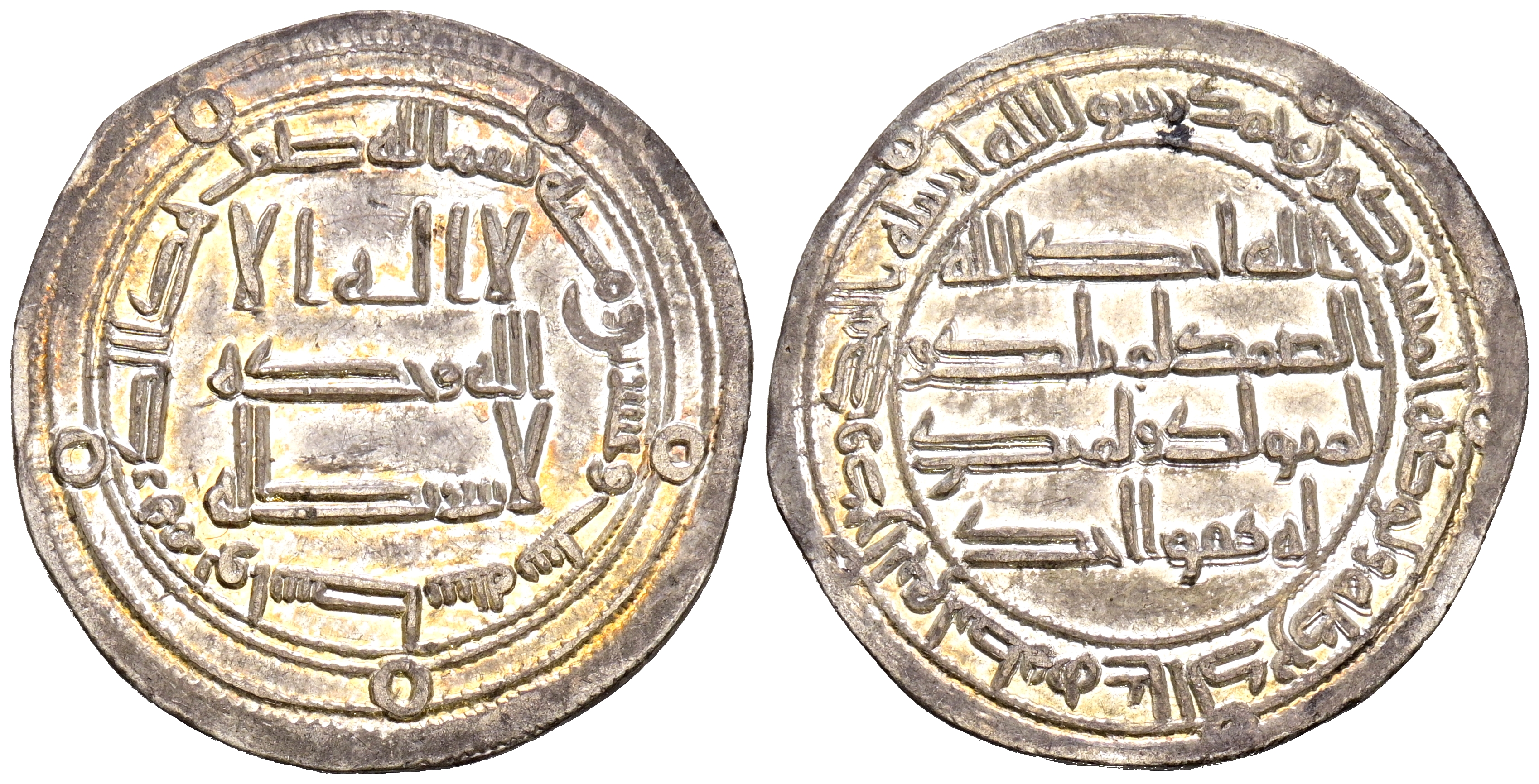 CALIFATO OMEYA, Yazid III ibn al-Walid. Dirham. (Ar. 2,94g/24mm). 126H. Wasit / واسط. (Klat 719b). EBC. Brillo original con ligero tono dorado.