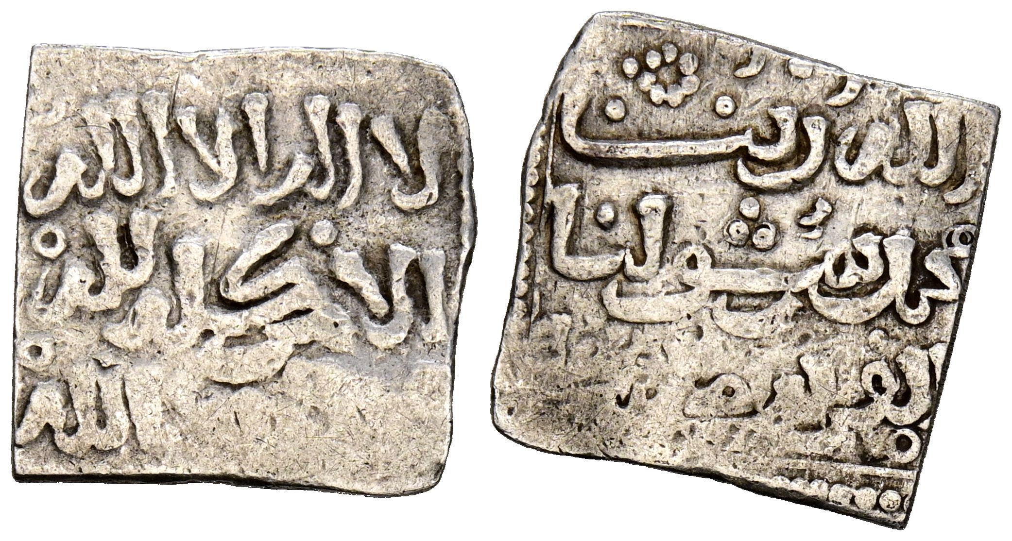 ANTI-ALMOHADES MERINÍES, Anónima. Dirham. (Ar. 0,84g/13mm). S/D. (Hohertz 835; Medina 205). En la última línea de la IIA. aparece en lugar de Al-Mahdi, la mención al Corán: القران امامنا ('El Corán es nuestro Iman') asi como un curioso adorno en form a de flor. MBC-. Escasa.
