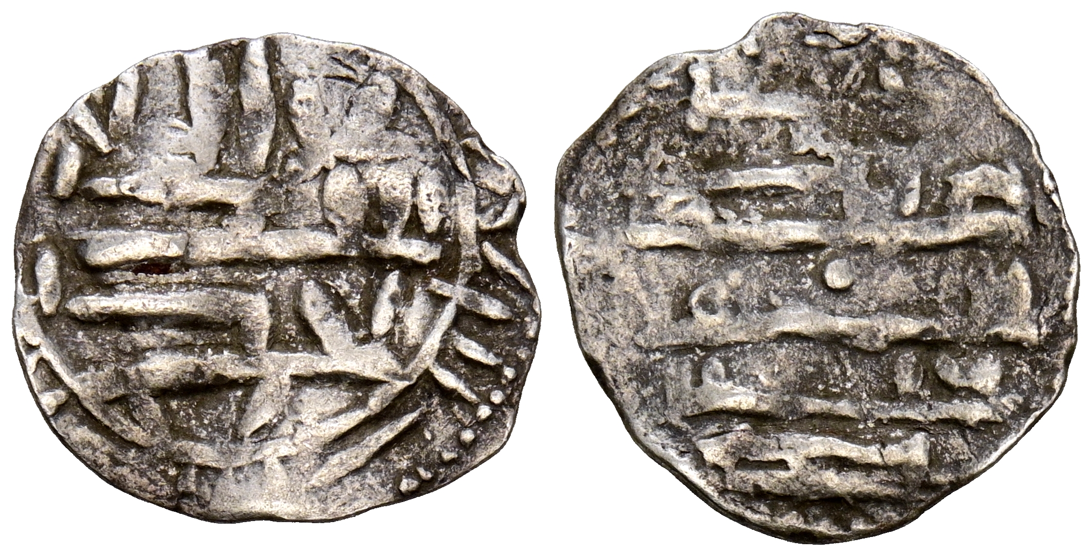 SULAYMANÍES, Yahya ibn Muhammad. 1/4 Dirham. (Ar. 0,68g/14mm). Imitación bárbara con leyendas degeneradas. (Album J434). MBC. Rara. Ex Ibercoin Subastas, Subasta Online 25 (30/01/2019), Nº lote 570.