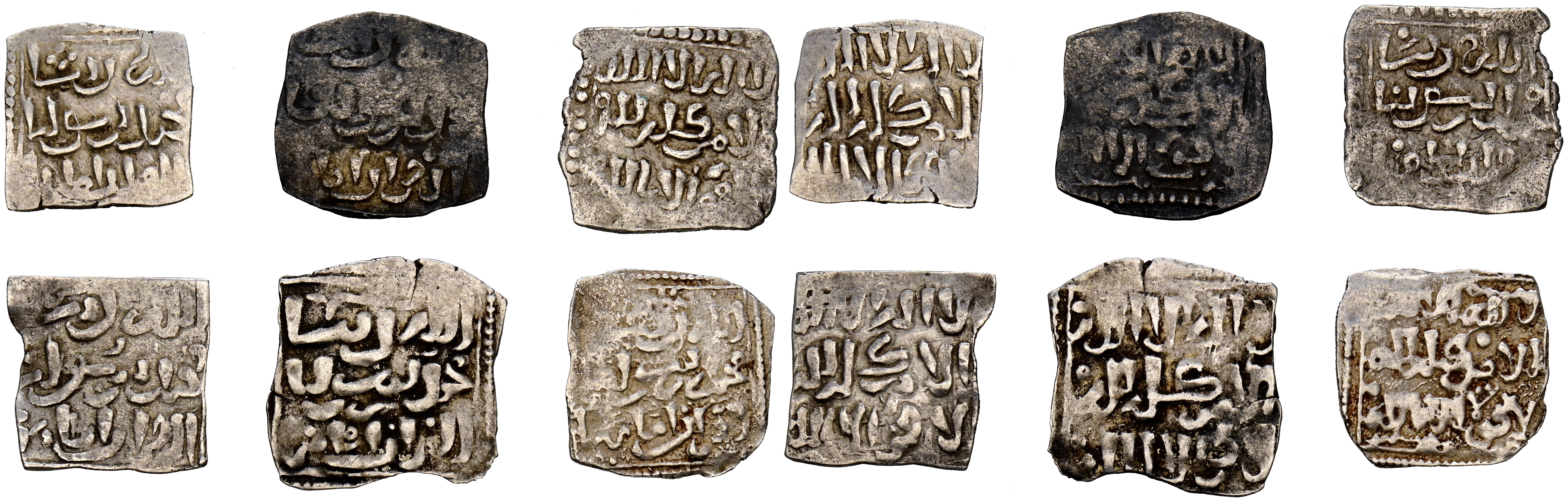 Intereante conjunto formado por 6 dirham anti-almohades, alguno con ceca. Diferentes variantes, medidas y estados de concervación. A EXAMINAR