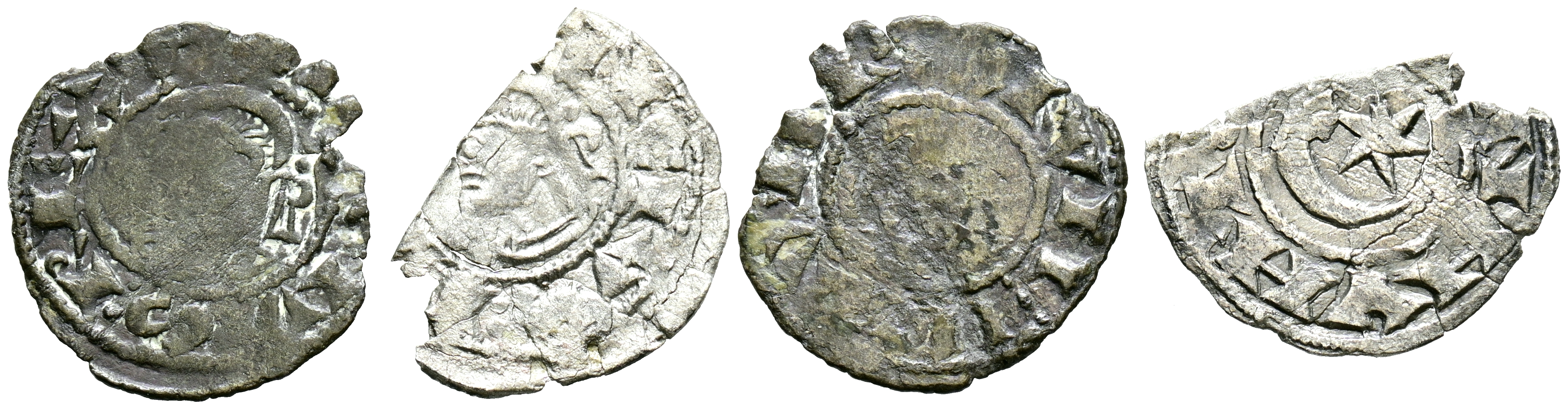 SANCHO VII. Interesante y escasa pareja de dineros tipo Cru V.S. 224. Diferentes medidas y estados de conservación. A EXAMINAR.