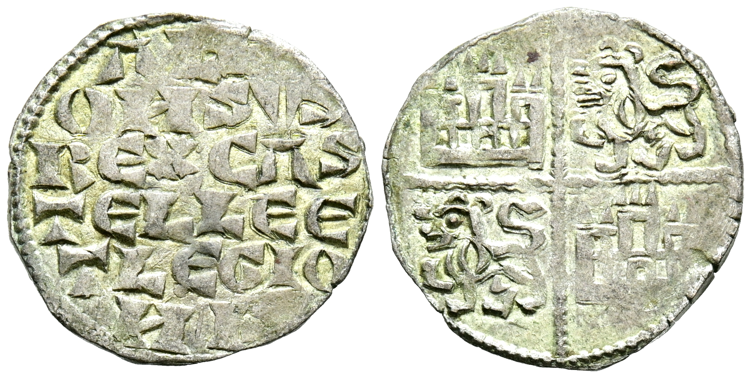 ALFONSO X (1252-1284). Dinero alfonsí ''de la 1º guerra de Granada''. (Ve. 1,06g/18mm). Sin marca de ceca. (Imperatrix A10:4.1; FAB-227). Anv: Leyenda en seis líneas: ALF/ONSVS/REX CAS/TELLE E/T LEGIO/NIS. Rev: Cuartelado de castillos y leones. EBC-. Vellón rico. Buen ejemplar.