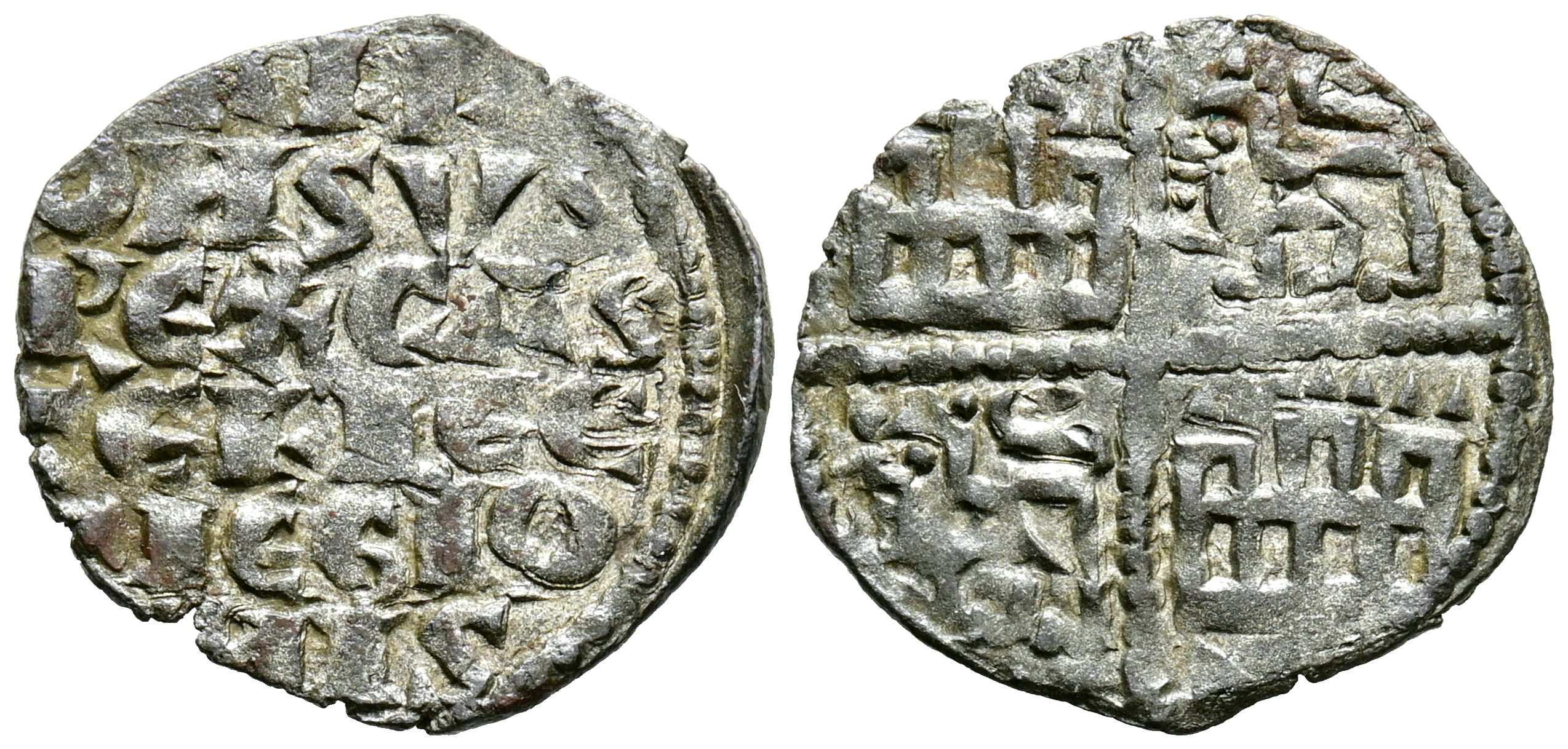 ALFONSO X (1252-1284). Dinero Alfonsí ''de la 1º guerra de Granada". (Ve. 0,76g/18mm). Sin marca de ceca. (Imperatrix A10:4.1; FAB-227). Anv: Leyenda en seis líneas: ALFONSVS REX CASTELLE ET LEGIONIS. Rev: Castillos y leones. MBC+. Resto de brillo original.