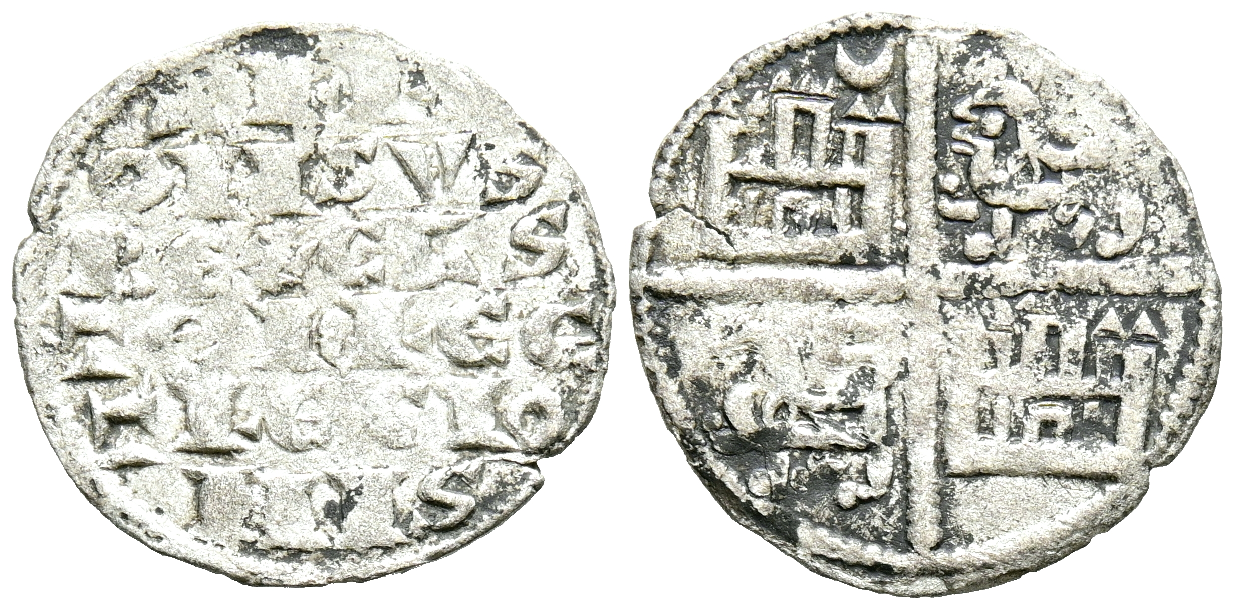 ALFONSO X (1252-1284). Dinero alfonsí ''de la 1º guerra de Granada''. (Ve. 0,64g/17mm). Marca de ceca creciente. (Imperatrix A10:4.13; FAB-238). Anv: Leyenda en seis líneas: ALF/ONSVS/REX CAS/TELLE E/T LEGIO/NIS. Rev: Cuartelado de castillos y leones. MBC. Vellón rico.