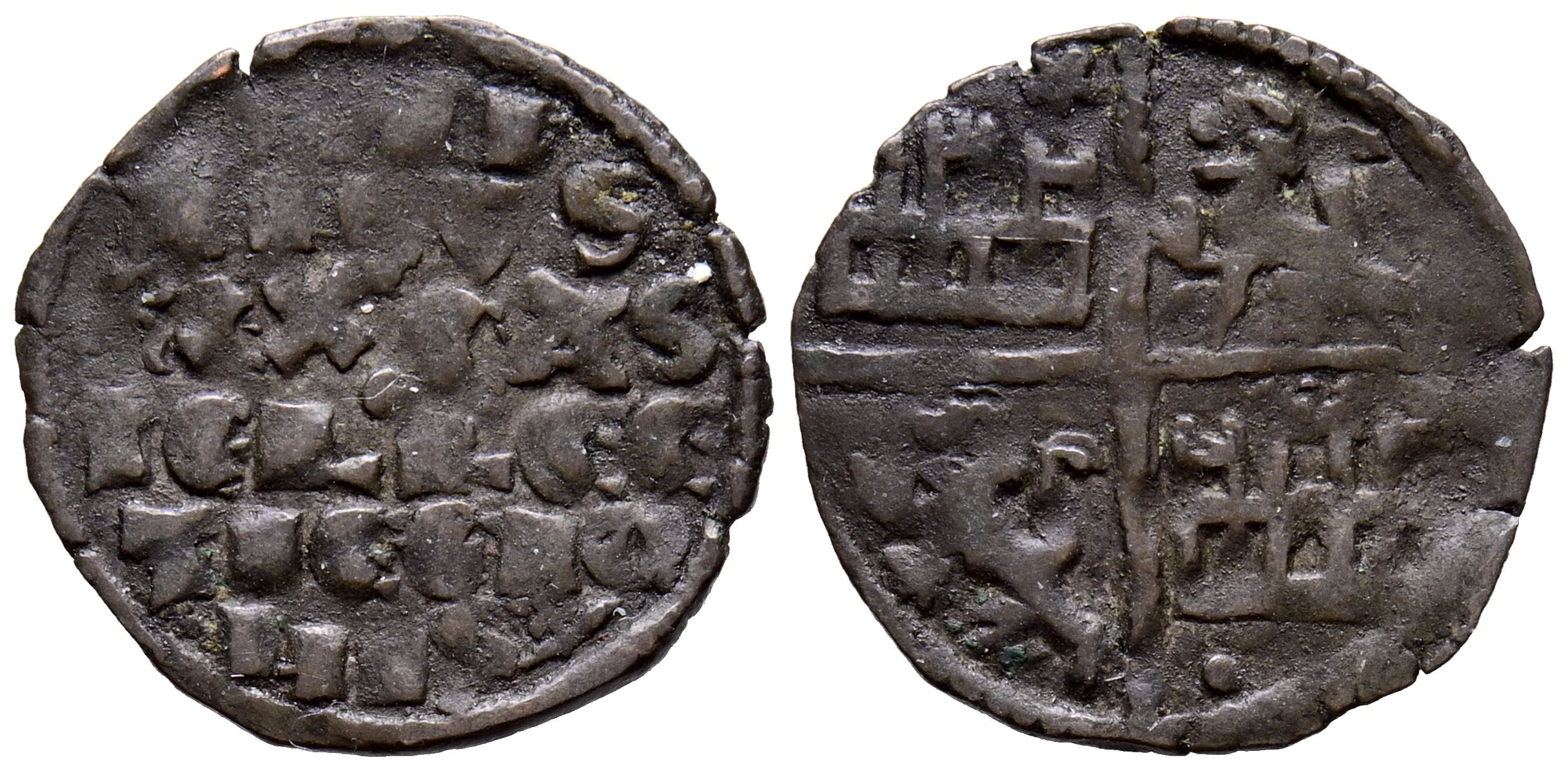 ALFONSO X (1252-1284). Dinero alfonsí "de la 1º guerra de Granada". (Ve. 0,80g/17mm). Estrella como marca de ceca. (Imperatrix A10:4.54; FAB-234.1). Anv: Leyenda en seis líneas: ALF/ONSVS/REX CAS/TELLE E/T LEGIO/NIS. Rev: Cuartelado de Castillos y leones, estella en 1º cuadrante y punto en el 4º. BC+. Pátina oscura.