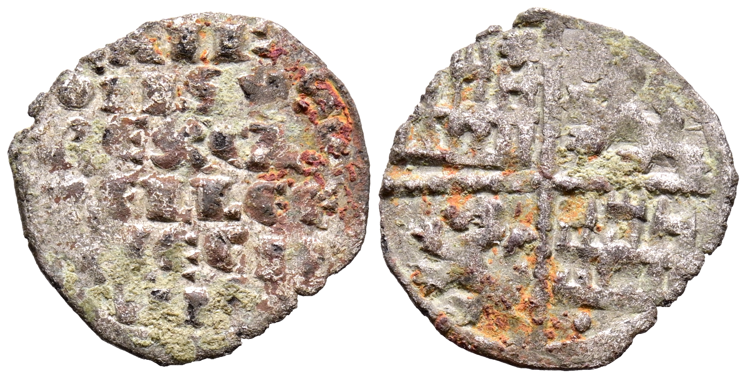 ALFONSO X (1252-1284). Dinero Alfonsí ''de la 1º guerra de Granada". (Ve. 0,74g/17mm). Marca de ceca estella y dos puntos. (Imperatrix A10:4.56; FAB-234.1var). Anv: Leyenda en seis líneas: ALF/ONSVS/REX CAS/TELLE E/T LEGIO/NIS. Rev: Castillos y leones con marca de ceca, estrella en 1º cuadrante y dos puntos en el 4º. MBC. Oxidaciones.