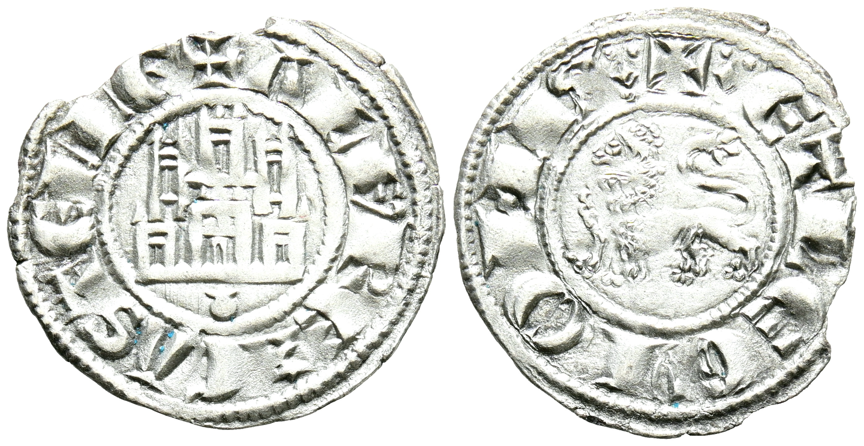 ALFONSO X (1252-1284). Dinero prieto. (Ve. 0,86g/20mm). Santiago de Compostela. (Imperatrix A10:6.41; FAB-250, como pepión). Anv: Castillo y debajo venera, todo dentro de gráfila circular, alrededor leyenda: ALF REX CASTELLE. Rev: León a izquierda dentro de gráfila circular, alrededor leyenda: ET LEGIONIS. MBC+. Leve falta en cospel.Ex Aureo & Calicó, Subasta 130 (20/09/2001), Nº lote 872.