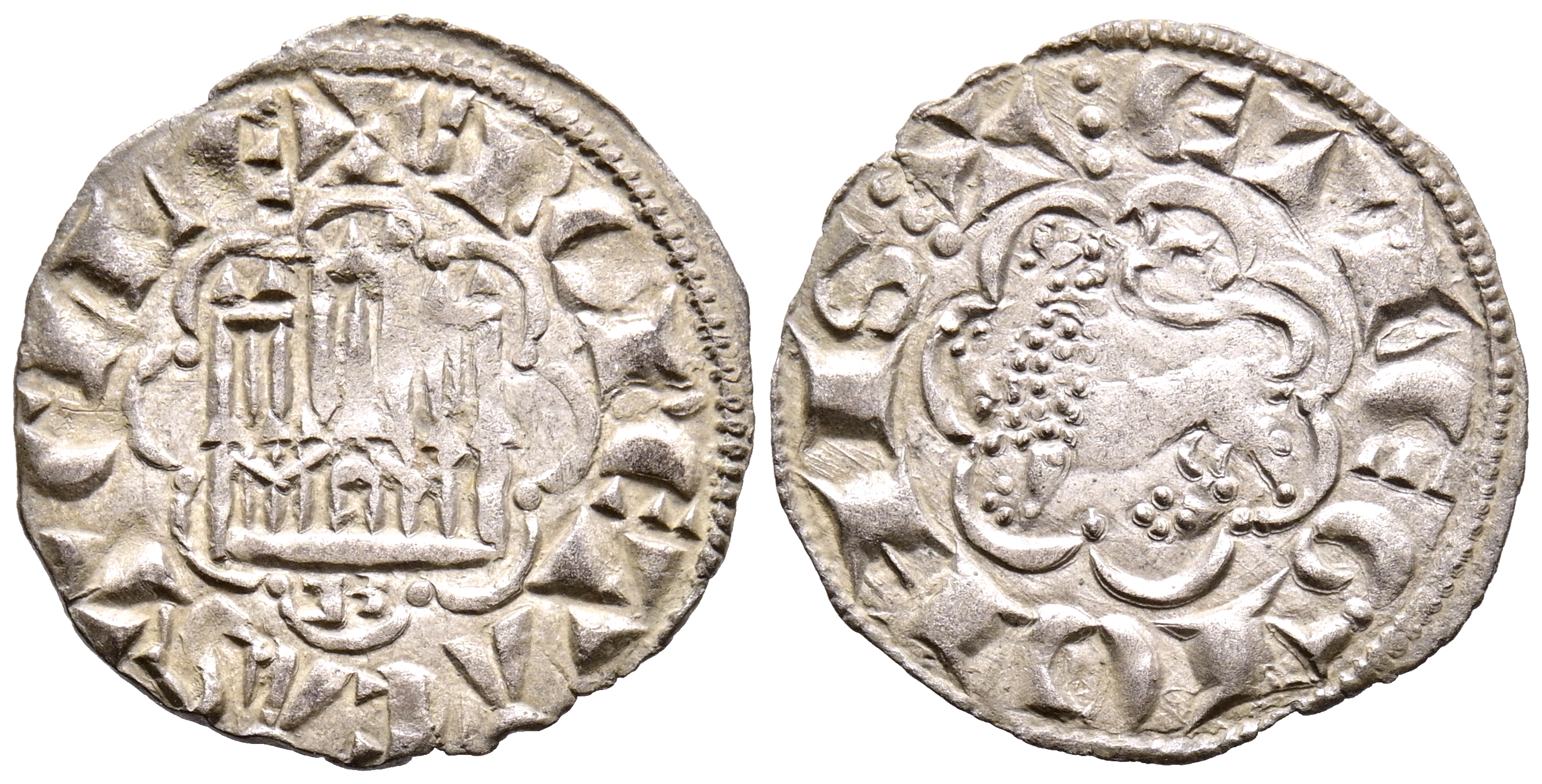 ALFONSO X (1252-1284). Blanca Alfonsí (de la 2º Guerra de Granada). (Ve. 0,69g/18mm). Burgos. (Imperatrix A10:11.6; FAB-263 como Novén). Anv: Castillo y debajo B dentro de gráfila lobular, alrededor leyenda: MONETA CASTELLE. Rev: León rampante a izquierda dentro de gráfila lobular, alrededor leyenda: ET LEGIONIS. MBC+. Precioso ejemplar.