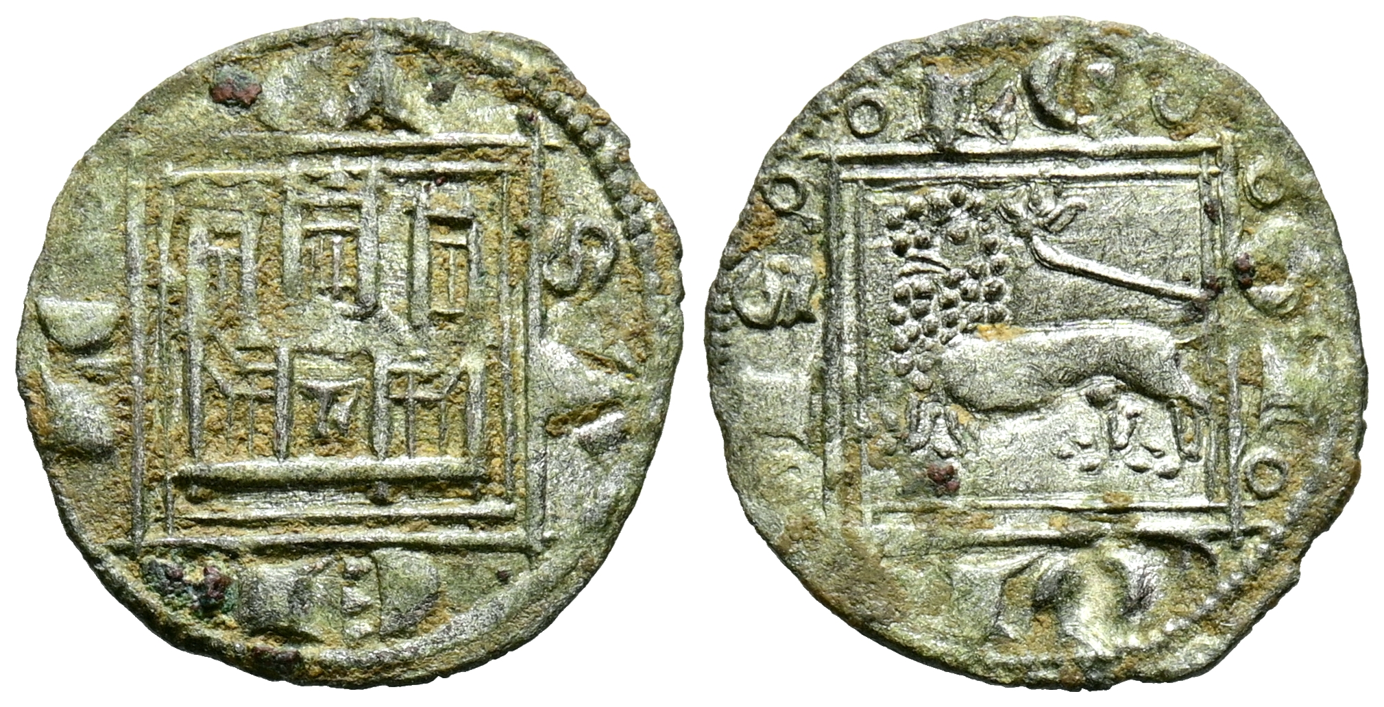 ALFONSO X (1252-1284). Pugesa / Óbolo. (Ve. 0,46g/15mm). Sin marca de ceca. (Imperatrix A10:14.50; FAB-280). Anv: Castillo dentro de gráfila cuadrada, alrededor leyenda: CASTELLE. Rev: León pasante a izquierda dentro de gráfila cuadrada, alrededor leyenda: LEGIONIS. MBC+. Precioso ejemplar de vellon rico.