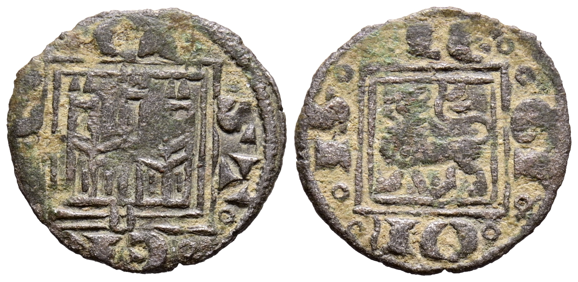 ALFONSO X (1252-1284). Obolo. (Ve. 0,49g/14mm). Murcia. (Imperatrix A10:14.26; FAB-285). Anv: Castillo, debajo: M, todo dentro de gráfila cuadrada, alrededor leyenda: CASTELLE. Rev: León estante a izquierda dentro de gráfila cuadrada, alrededor leyenda: LEGIONIS. MBC+. Interesante ejemplar.