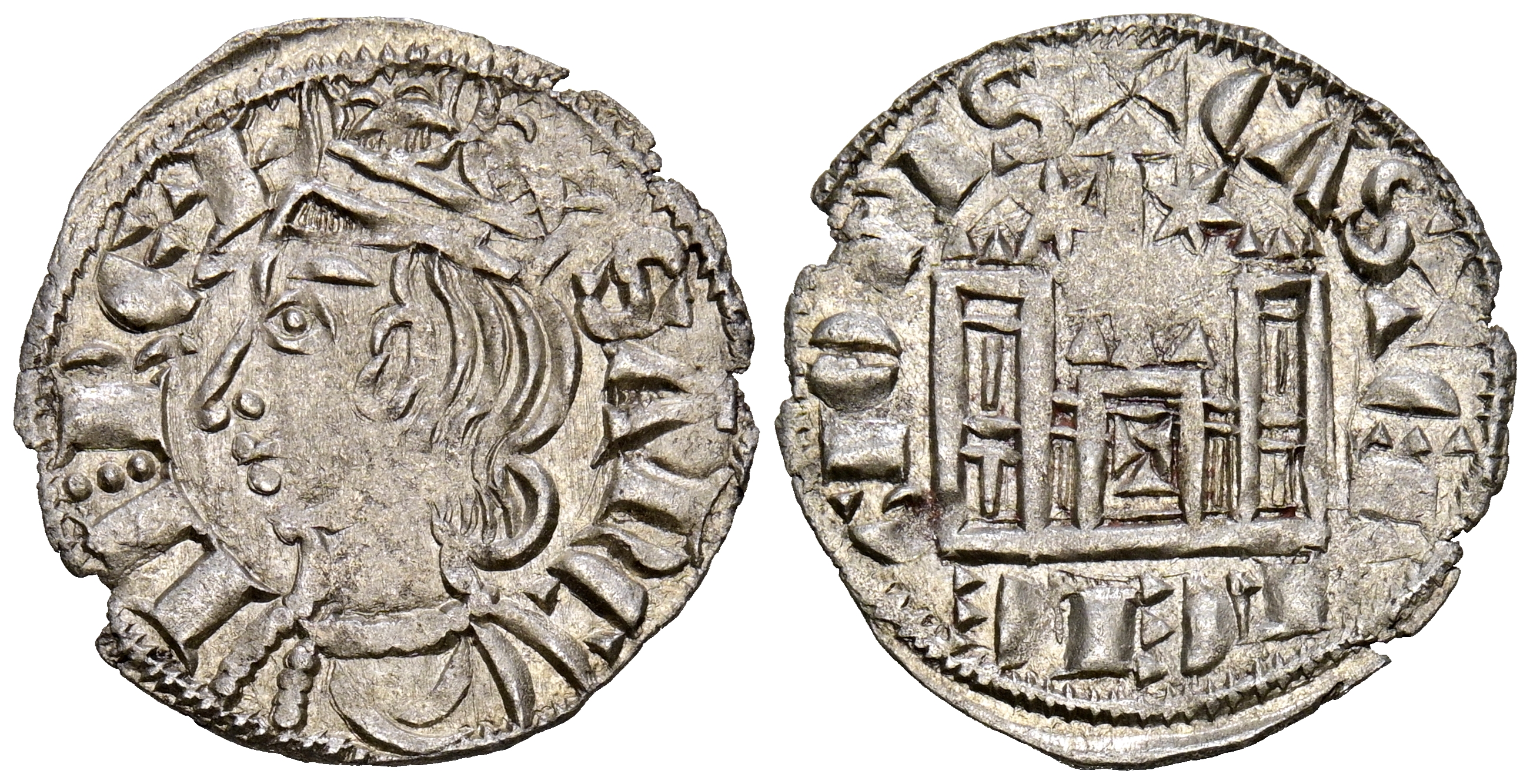 SANCHO IV (1284-1295). Cornado. (Ve. 0,79g/18mm). Toledo. (Imperatrix S4:3.40; FAB-302). Anv: Busto coronado a izquierda, alrededor leyenda: SANCII REX. Rev: Castillo con cruz sobre vástago central con marcas de estrellas, alrededor leyenda: CASTELLE E LEGIONIS. EBC.