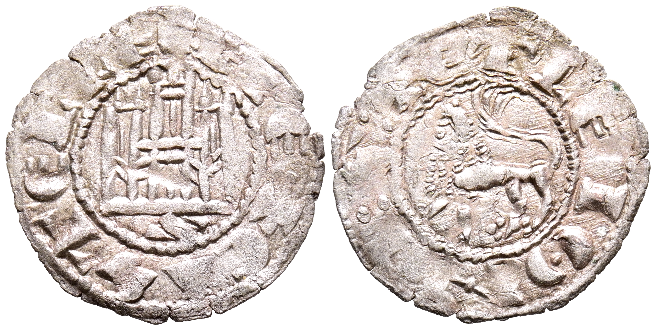FERNANDO IV (1295-1312). Dinero. (Ve. 0,68g/19mm). Sevilla. (Imperatrix F4.2;26; FAB-254.1, como pepión). Anv: Castillo y debajo S inclinada, todo dentro de gráfila circular, alrededor leyenda: F REX CASTELLE. Rev: León a izquierda dentro de gráfila circular, alrededor leyenda: ET LEGIONIS. MBC+.