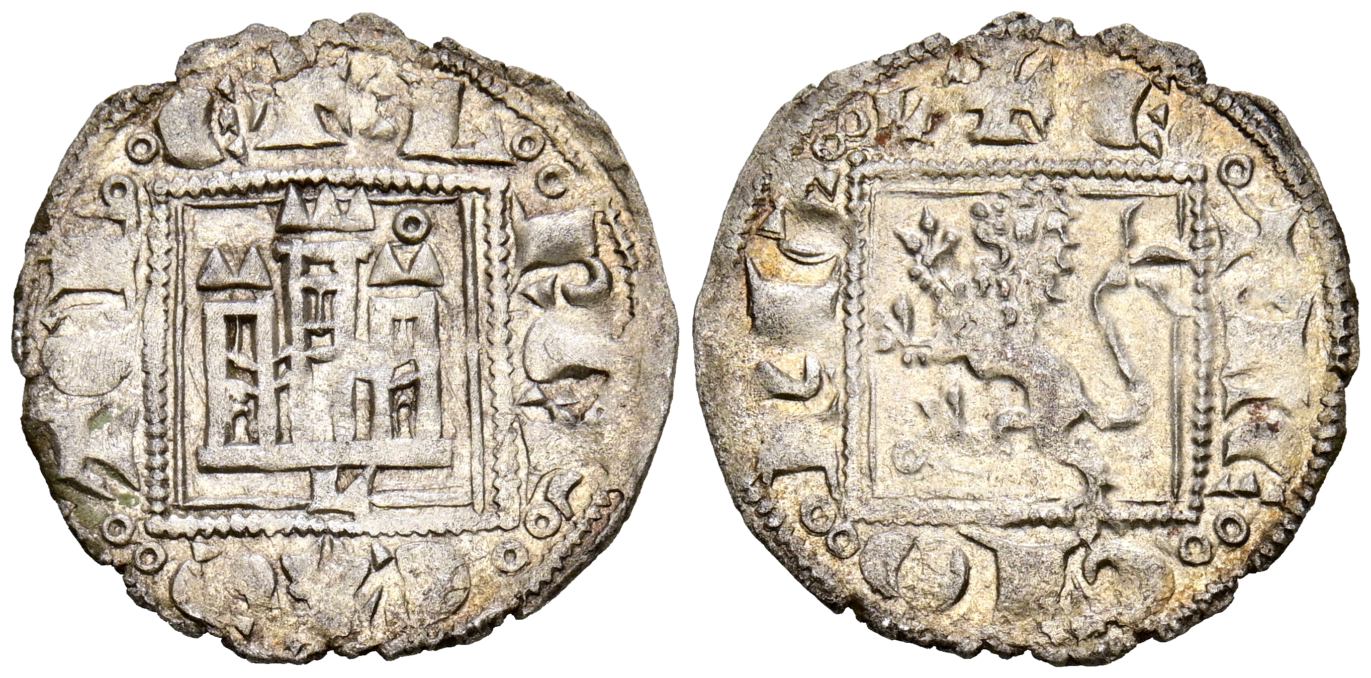 ALFONSO XI (1312-1350). Dinero Novén. (Ve. 0,77g/19mm). León. (Imperatrix A11:1.12; FAB-357.2). Anv: Castillo con roel encima de la torre derecha, debajo L, todo dentro de gráfila cuadrada, alrededor leyenda: ALF REX CASTELLE. Rev: León rampante a izquierda con roel delente, alrededor leyenda: ET LEGIONIS. EBC-. Precioso ejemplar, con brillo original y ligero tono en reverso. Muy escaso así.