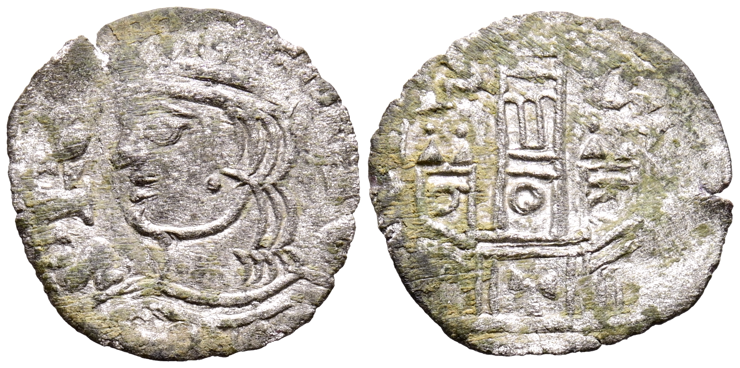 ALFONSO XI (1312-1350). Cornado. (Ve. 0,73g/18mm). Toledo. (Imperatrix A11:2.32; FAB-341). Anv: Busto coronado de Alfonso XI a izquierda, alrededor leyenda: ALFONS REX. Rev: Castillo, T en puerta y roseta en la torre principal, alrededor leyenda: CASTELLE ET LEGIONIS. MBC-.