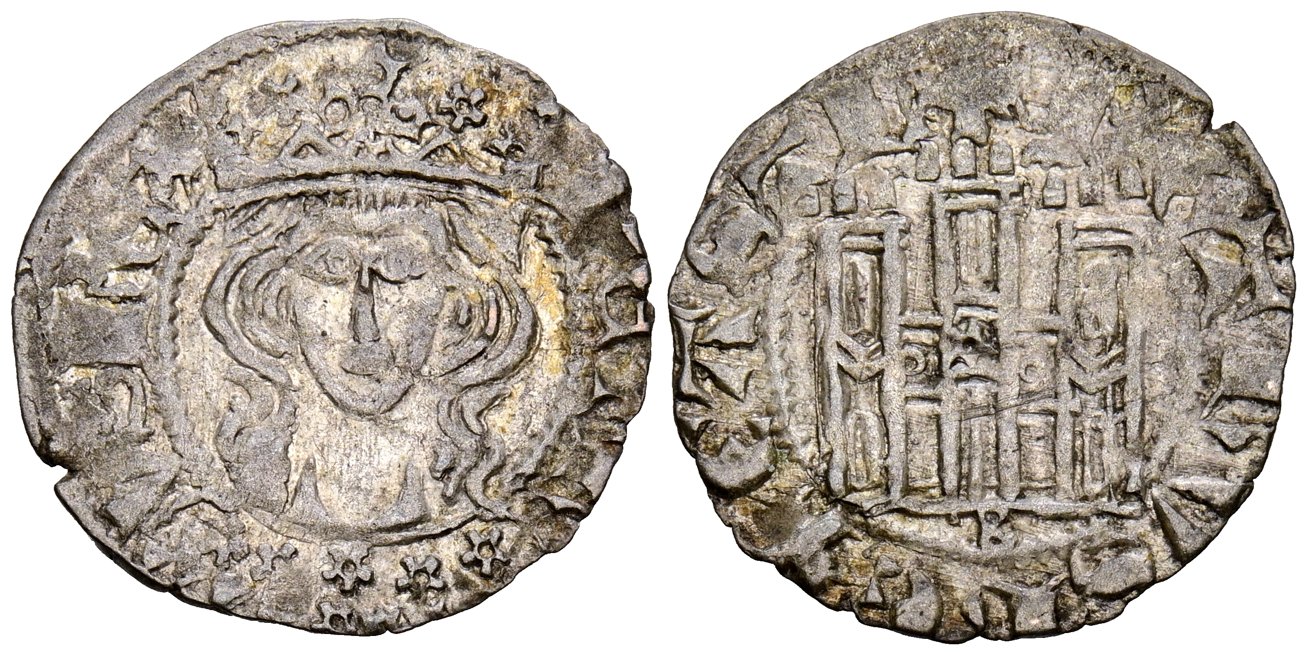 PEDRO I (1350-1368). Dinero coronado / Cornado. (Ve. 0,76g/19mm). Burgos. (Imperatrix P1:1.1; FAB-396). Anv: Busto de Pedro I coronado de frente cortando la gráfilar circular, alrededor leyenda: PETR VS REX. Rev: Castillo, debajo B, todo dentro de gráfila circular, alrededor leyenda: + PETRVS REX CASTELLE. MBC+. Escasa.