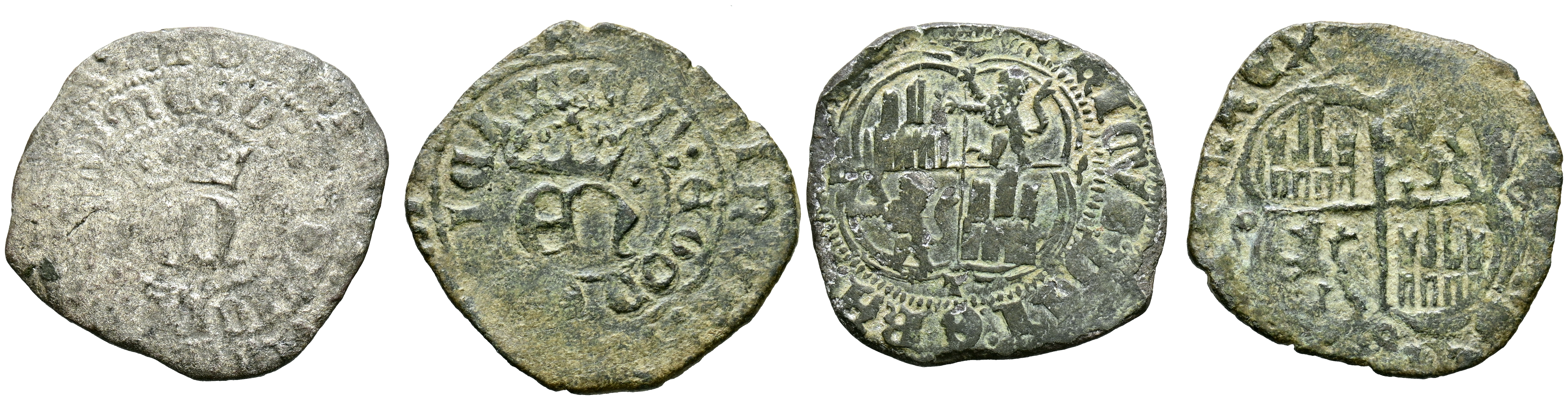 ENRIQUE II (1368-1379). Pareja de 1/2 reales de Vellón, 1 con ceca Toledo. Dierentes variantes, pesos y estados de consevación. A EXAMINAR.