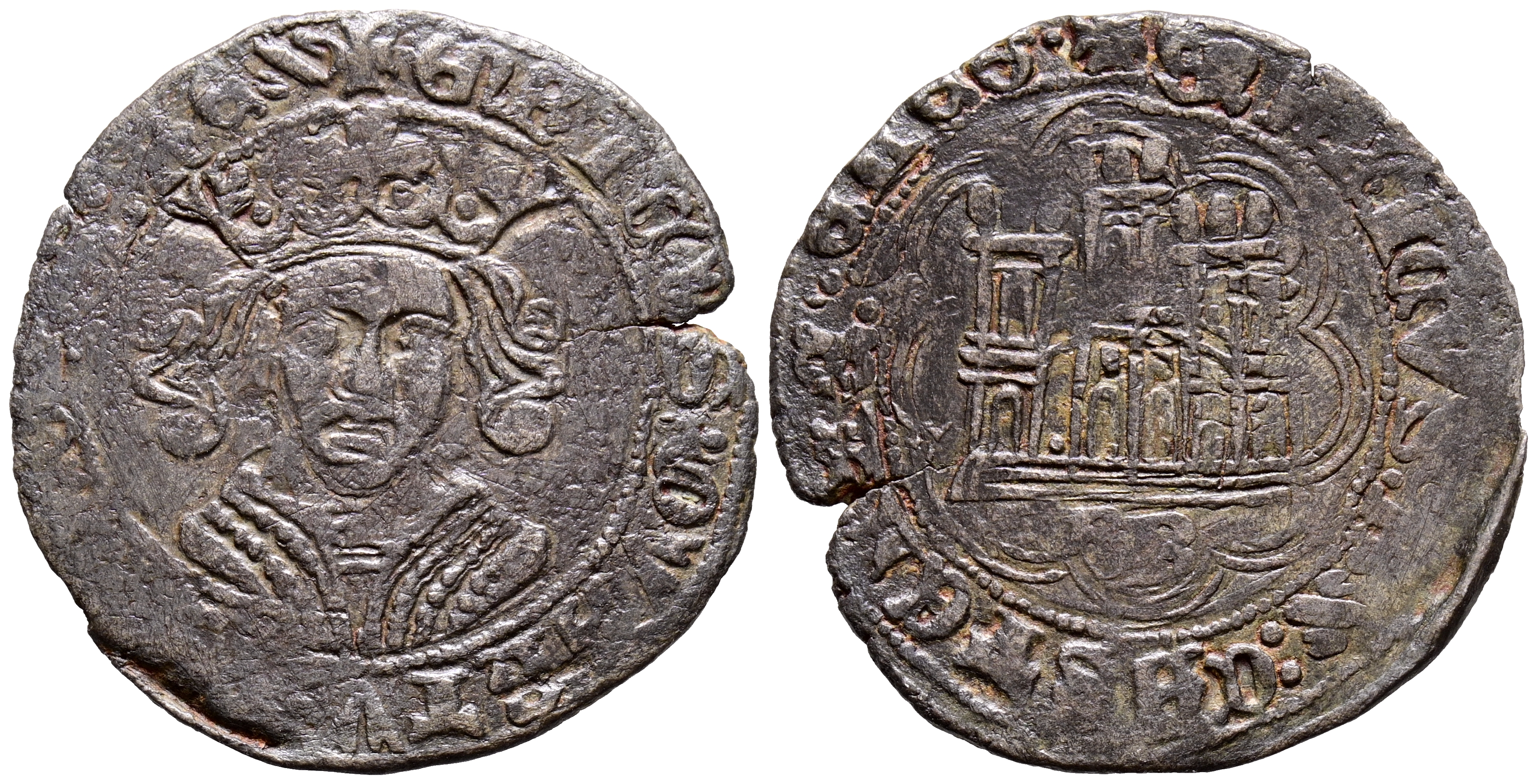 ENRIQUE IV (1454-1474). Cuartillo. (Ve. 3,04g/27mm). Burgos. (Imperatrix E$:14.36; FAB-739). Anv: Busto coronado y con coraza de Enrique IV de frente, dentro de gráfila circular, alrededor leyenda: ENRICVS CARTVS DEI GRACIA. Rev: Castillo, debajo: b, todo dentro de gráfila globlar, alrededor leyenda: ENRICVS REX CASTELLE. MBC.