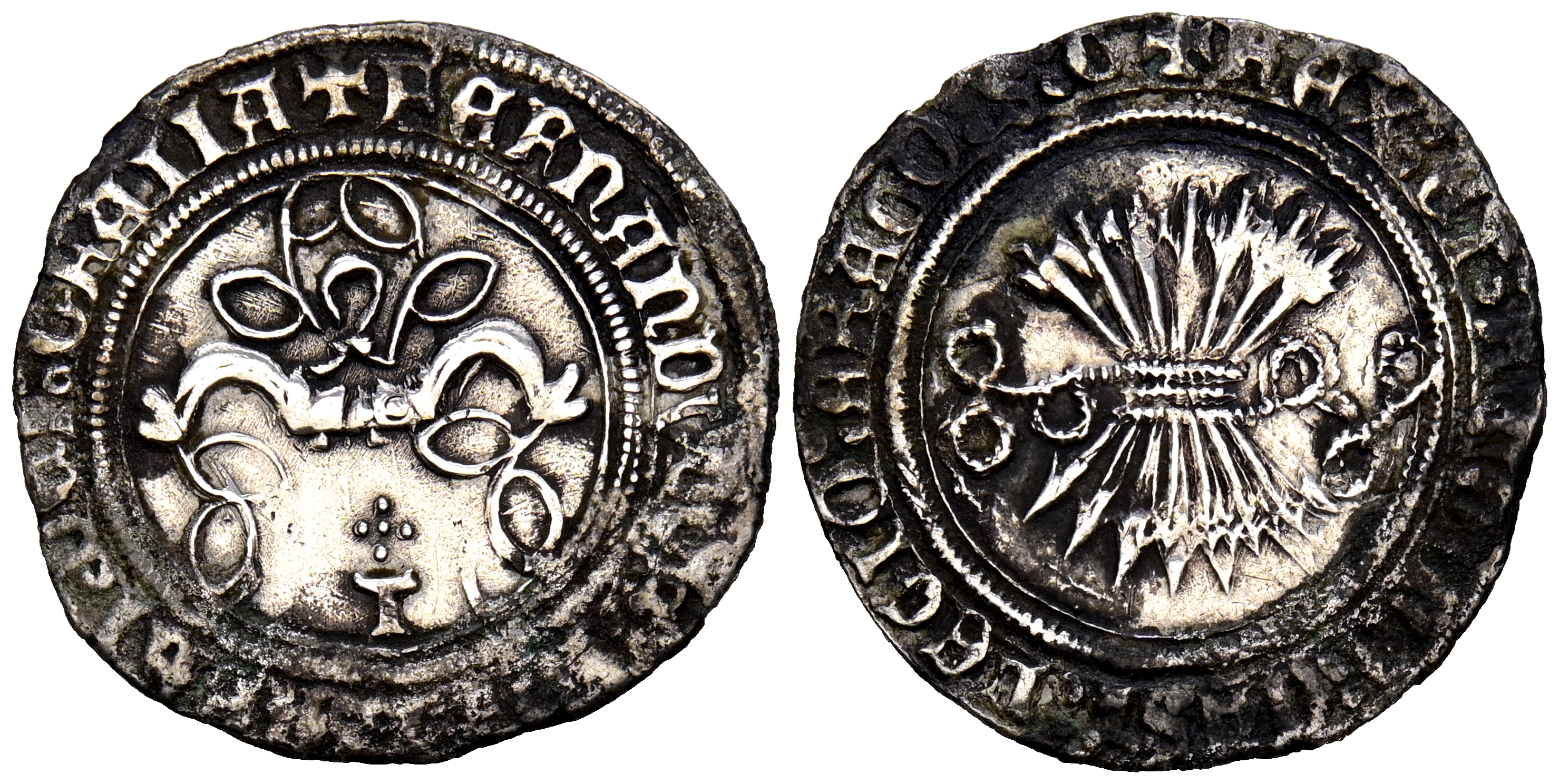 REYES CATÓLICOS (1474-1504). 1/2 Real. (Ar. 1,74g/21mm). S/D. Toledo. (Cal-2019-285). MBC. Oxidaciones limpiadas.