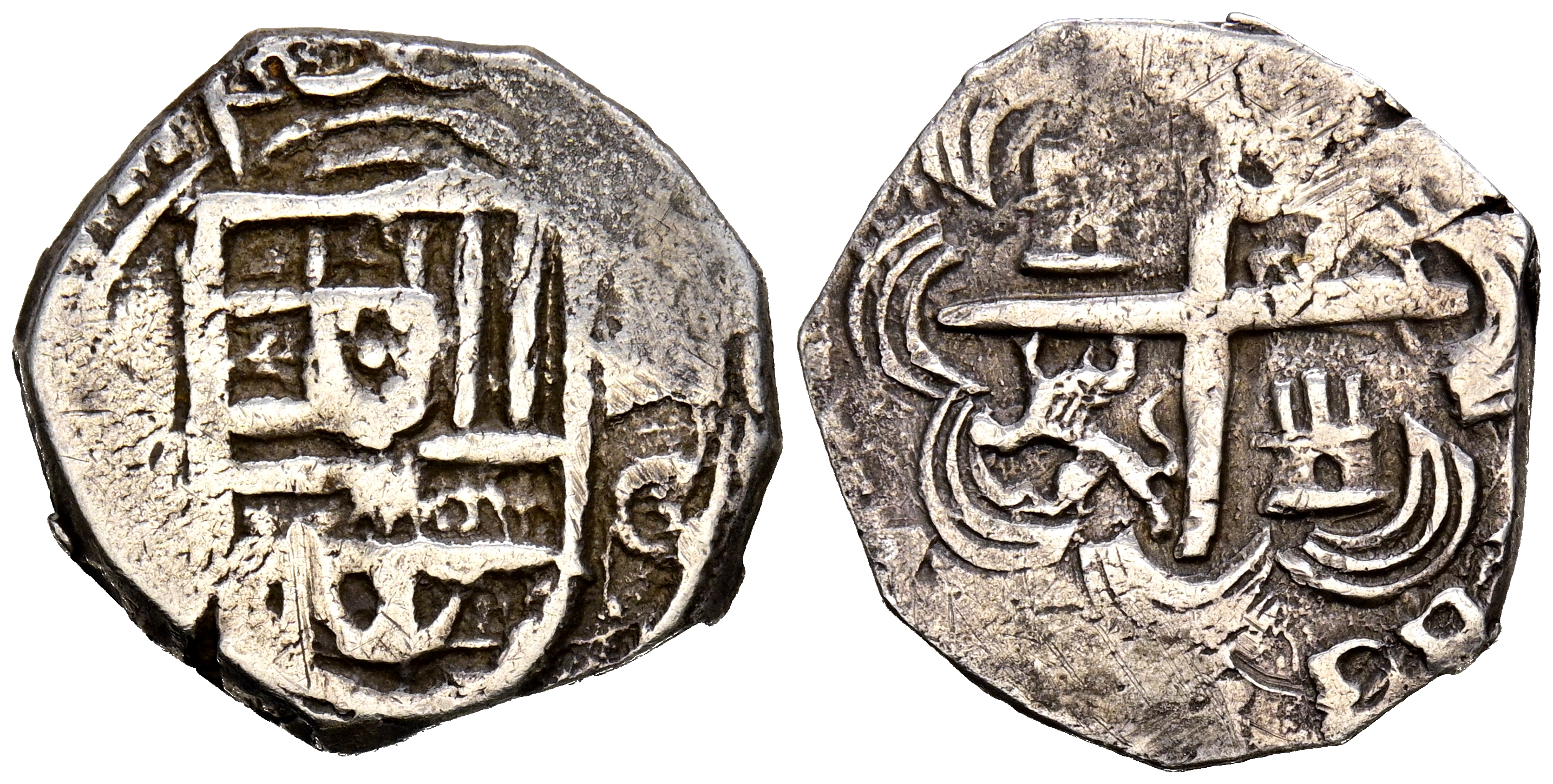 FELIPE III (1598-1621). 1 Real. (Ar. 3,40g/20mm). Fecha no visible. Granada M. (Cal-2019-Tipo 95). Ceca y ensayador a derecha. BC+. Rara.
