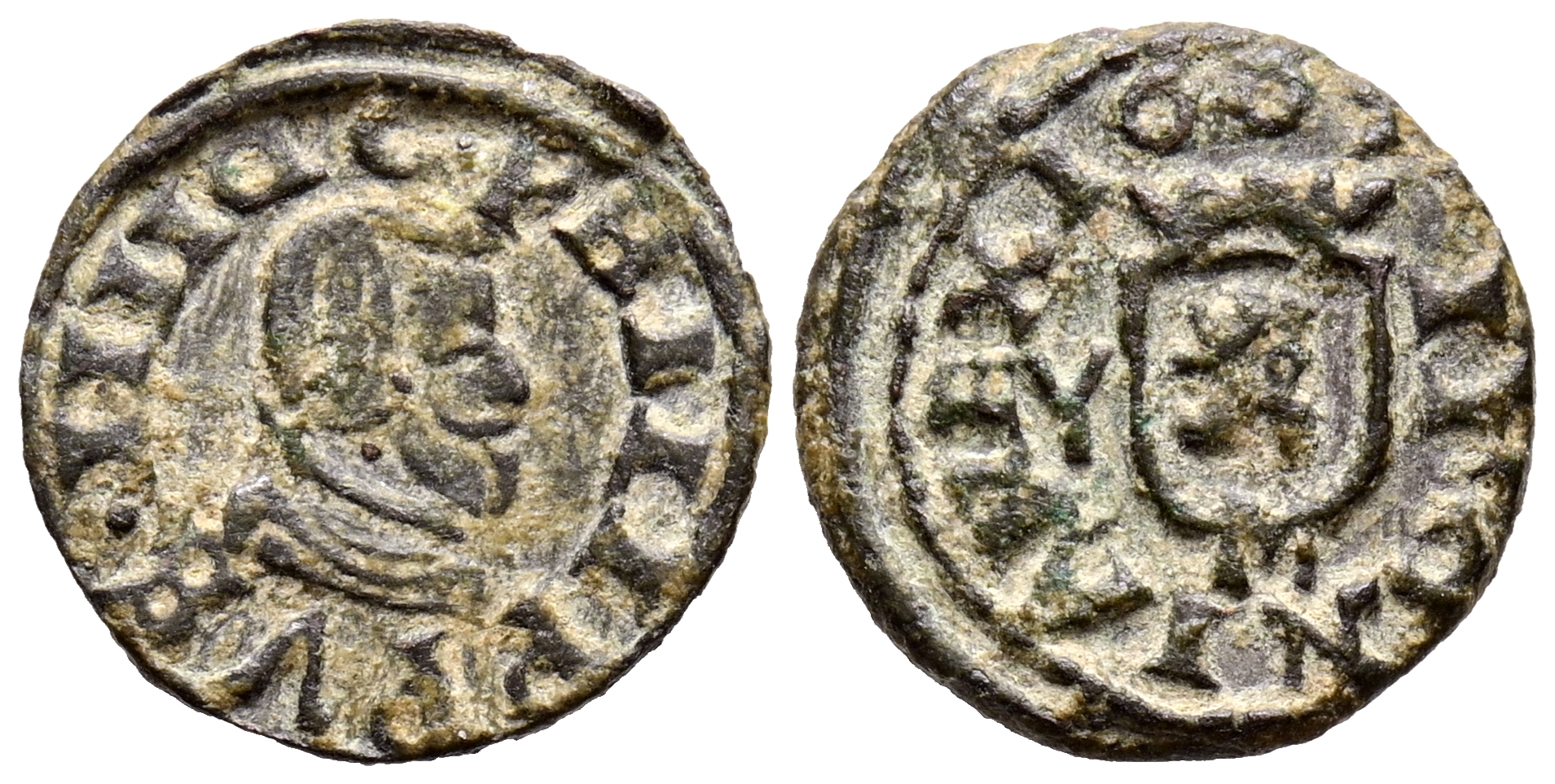 FELIPE IV (1621-1665). 2 Maravedís. (Ae. 0,75g/13mm). 1663. Madrid Y. (Cal-2019-148). Marca de ceca M debajo de escudo. MBC. Bonita pieza.