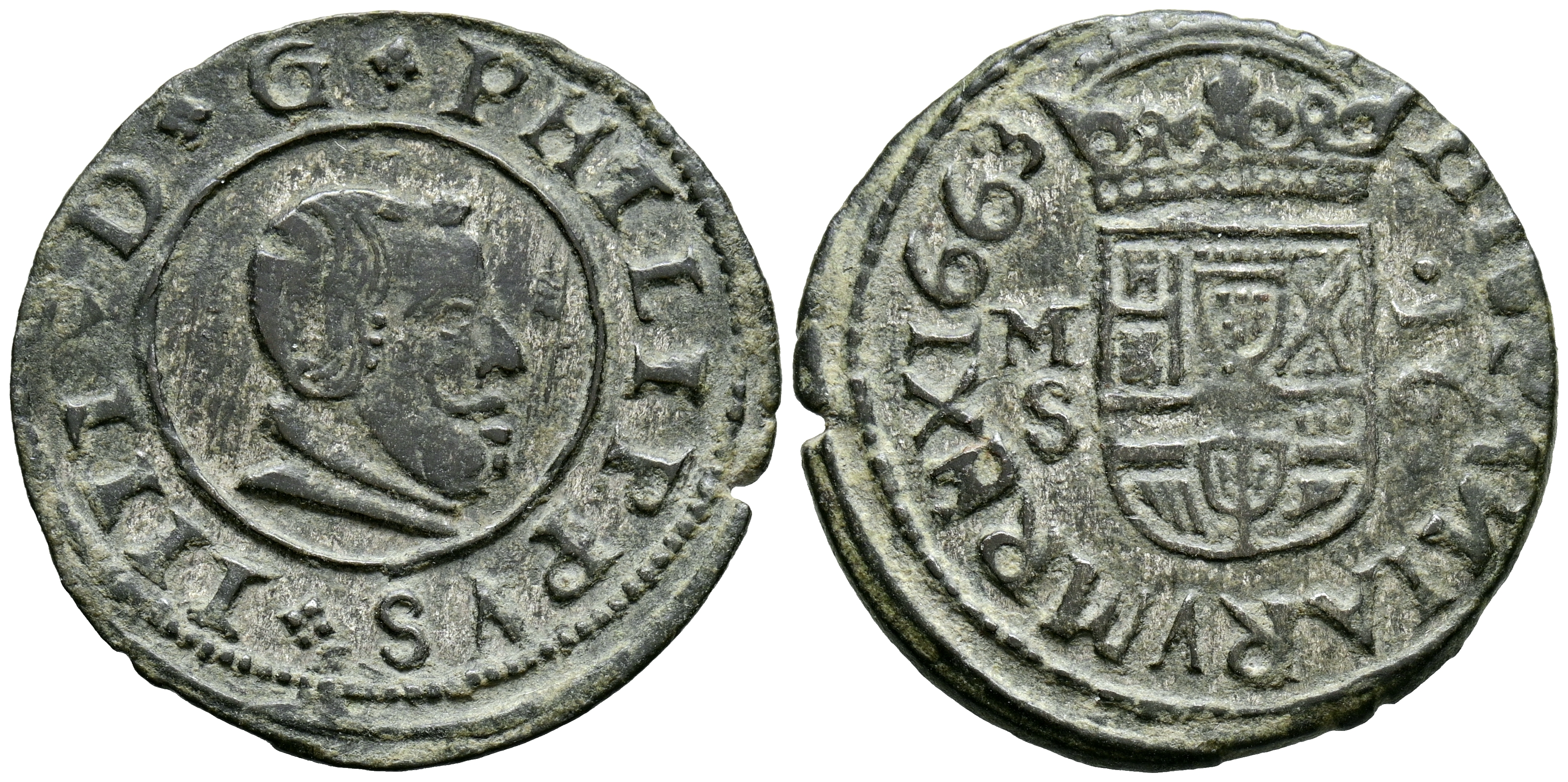 FELIPE IV (1621-1665). 16 Maravedís. (Ve. 4,32g/26mm). 1663. Madrid S. (Cal-2019-475). MBC.