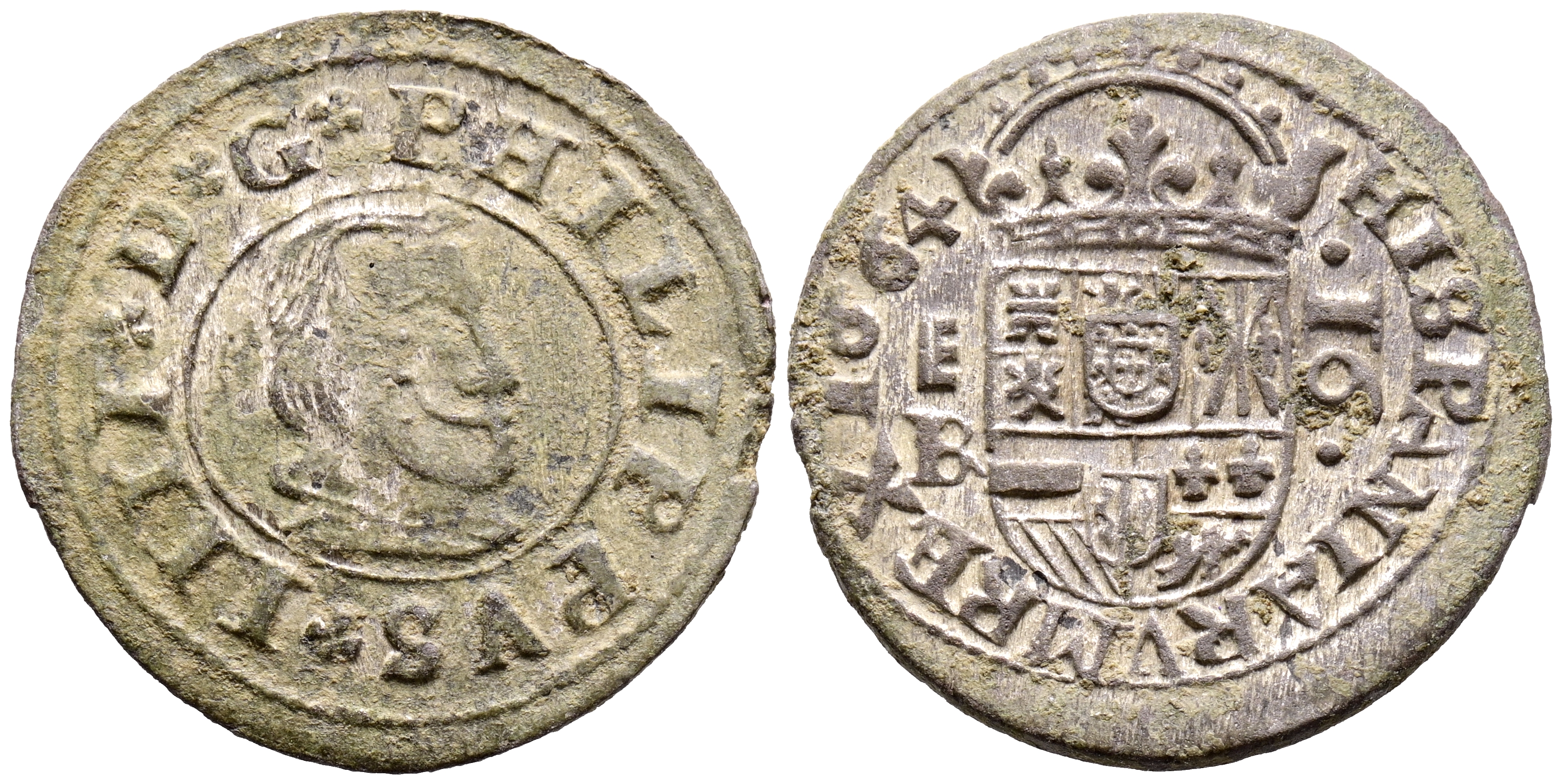 FELIPE IV (1621-1665). 16 Maravedís. (Ae. 4,12g/25mm). 1664. Segovia B. (Cal-2019-491). MBC+. Ligeros restos de plateado original. Bonito ejemplar.