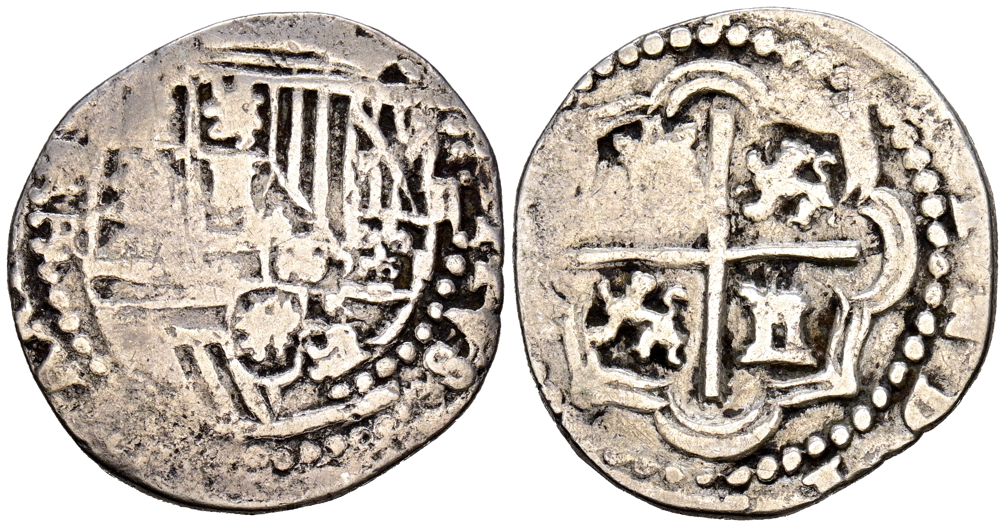 FELIPE IV (1621-1655). 2 Reales. (Ar. 5,66g/23mm). Fecha no visible. Potosí TR. (Cal-2019-Tipo 239). BC+. Escasa.