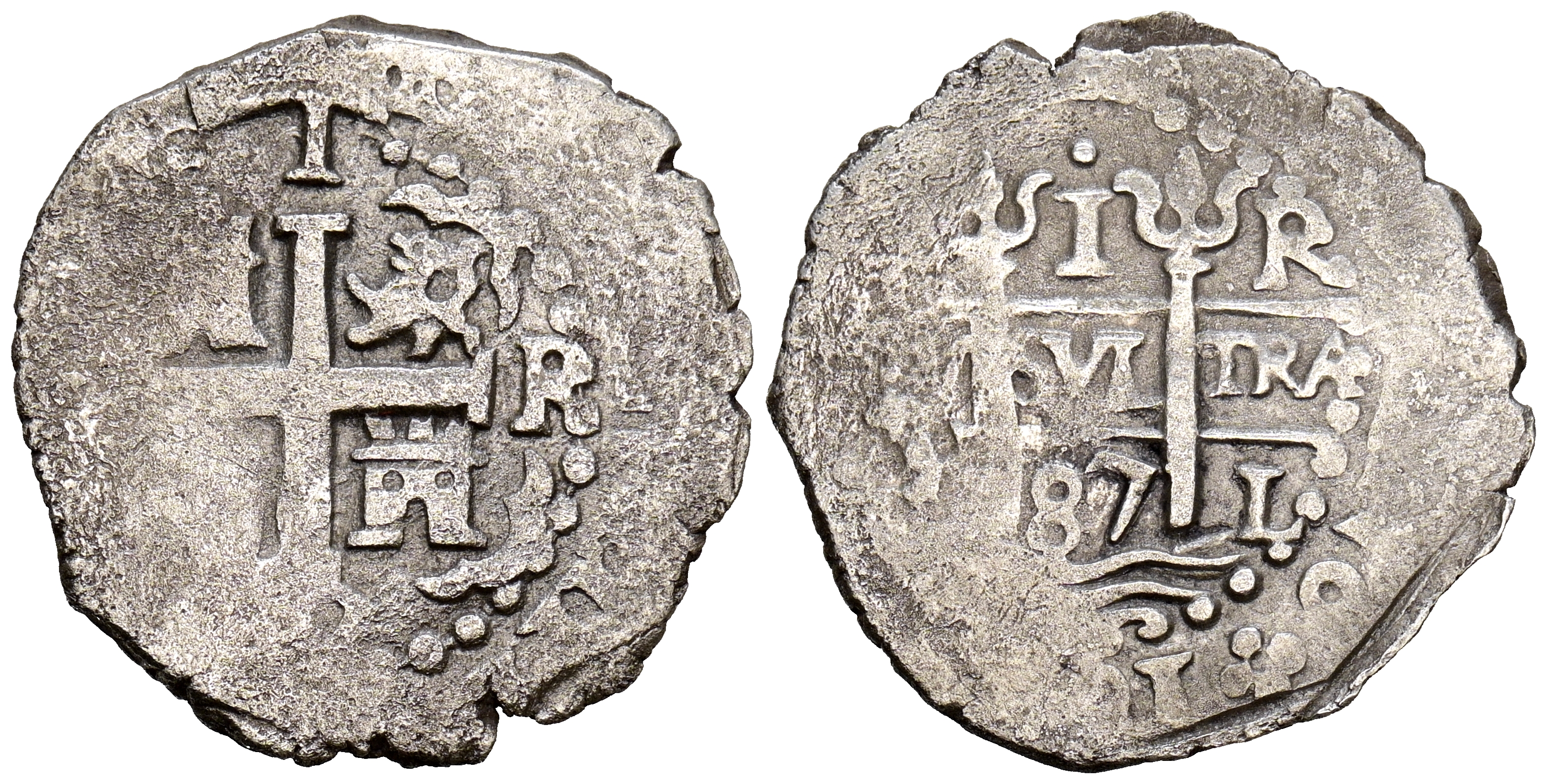 CARLOS II (1665-1700). 1 Real. (Ar. 3,39g/22mm). 1687. Lima R. (Cal-2019-217). MBC. Doble ensayador visible.
