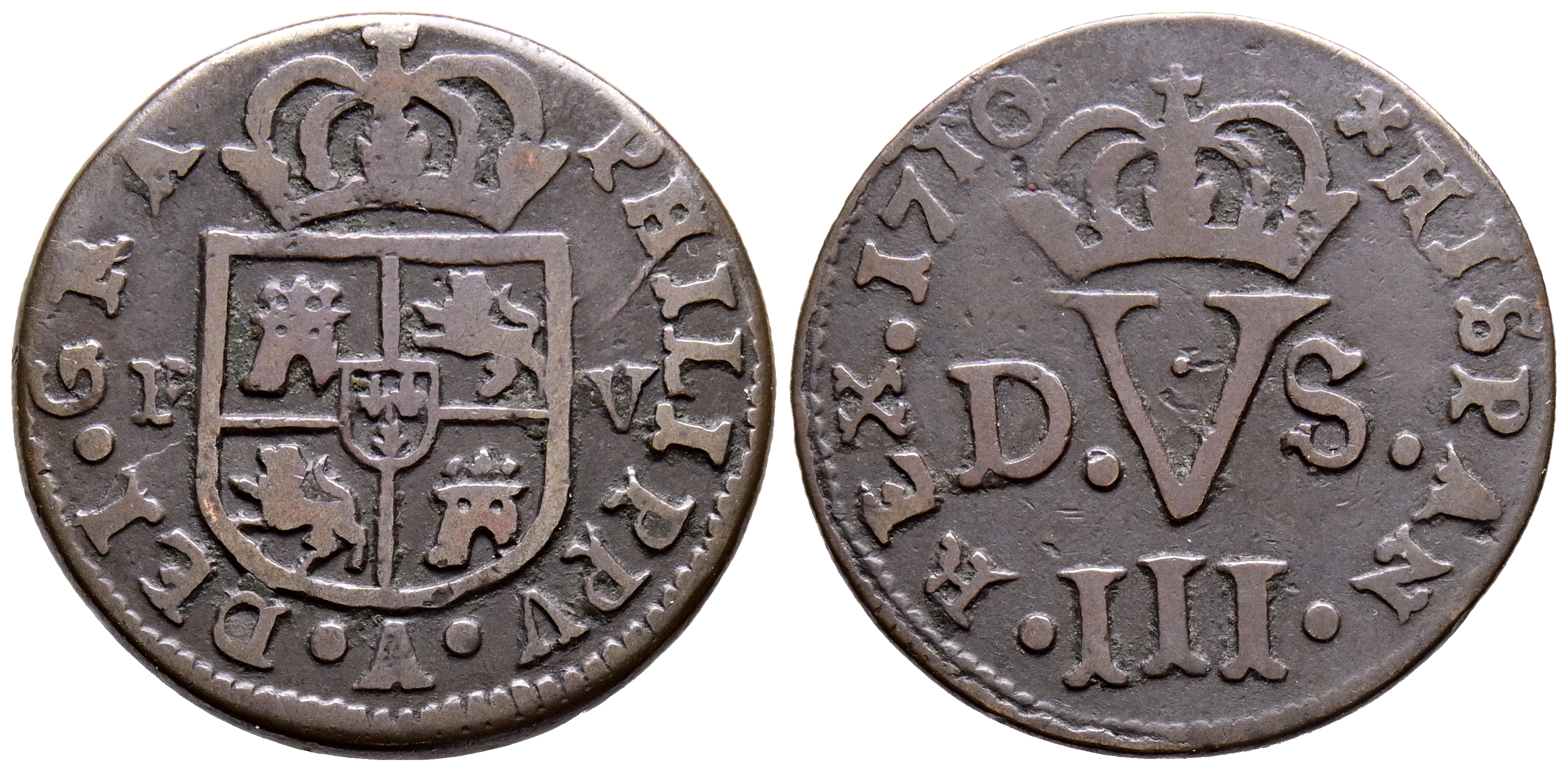 FELIPE V (1700-1746). 1 Treseta. (Ae. 3,65g/22mm). 1710. Valencia. (Cal-2019-9). MBC.