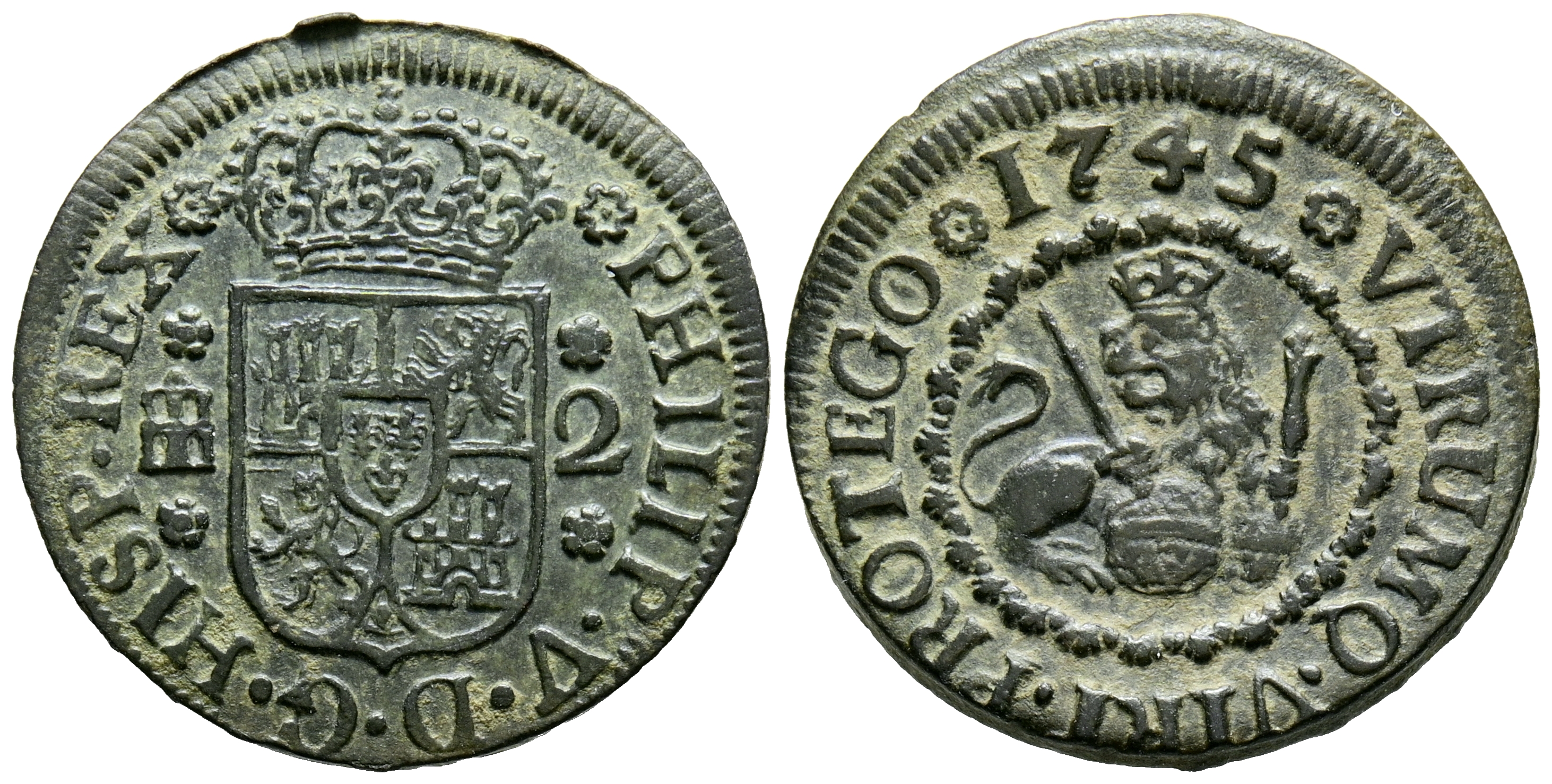 FELIPE V (1700-1746). 2 Maravedís. (Ae. 3,58g/21mm). 1745. Segovia. (Cal-2019-74). MBC+.