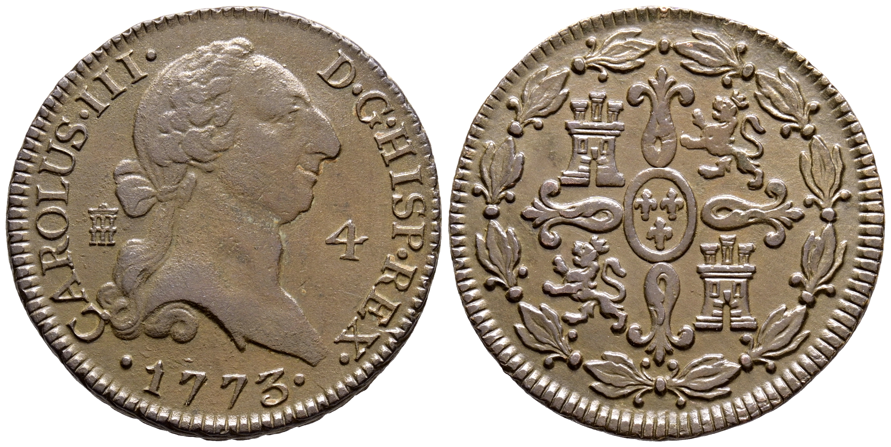 CARLOS III (1759-1788). 4 Maravedís. (Ae. 4,80g/25mm). 1773. Segovia. (Cal-2019-53). MBC+.