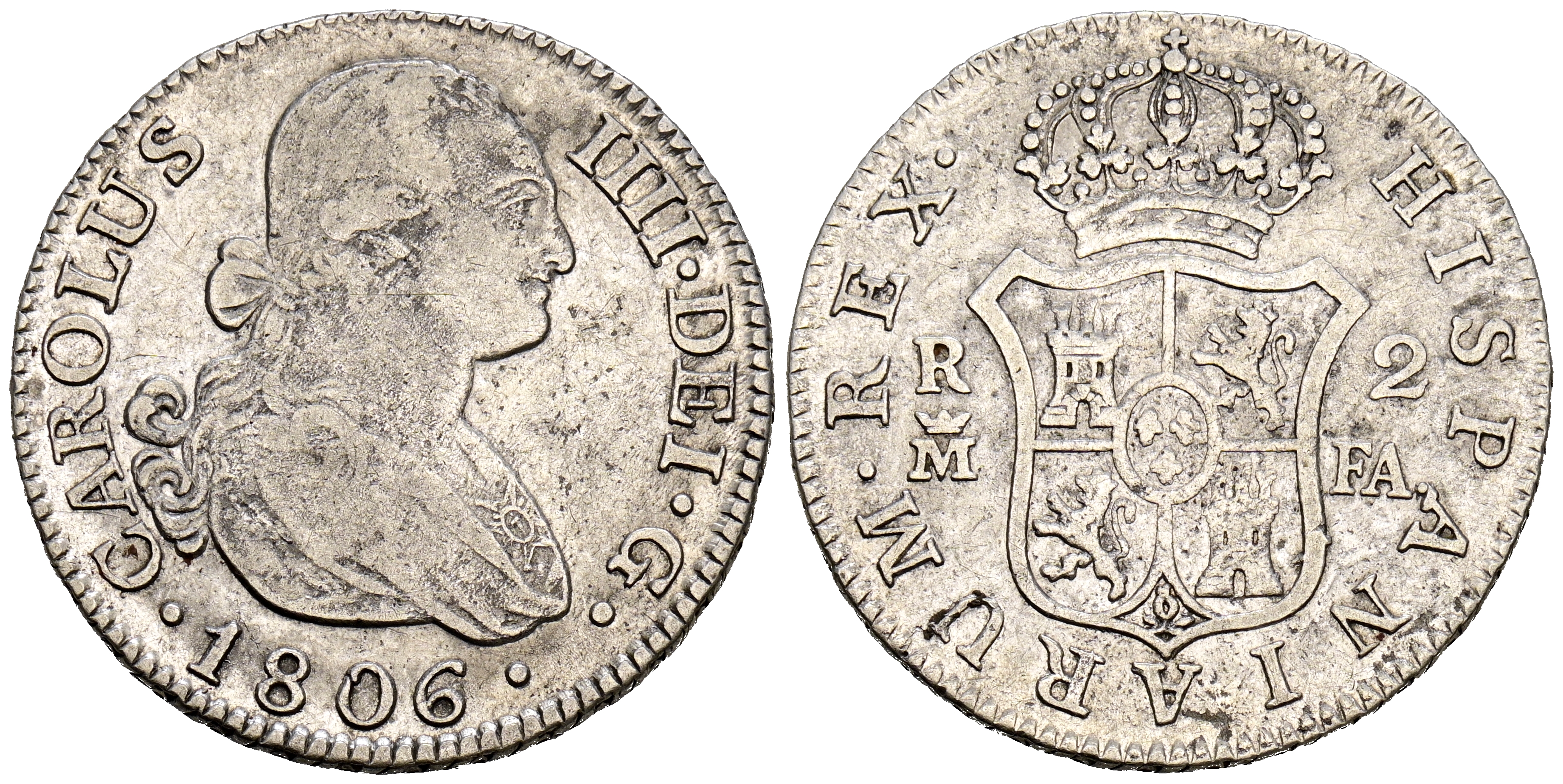 CARLOS IV (1788-1808). 2 Reales. (Ar. 5,68g/26mm). 1806. Madrid FA. (Cal-2019-615). MBC.