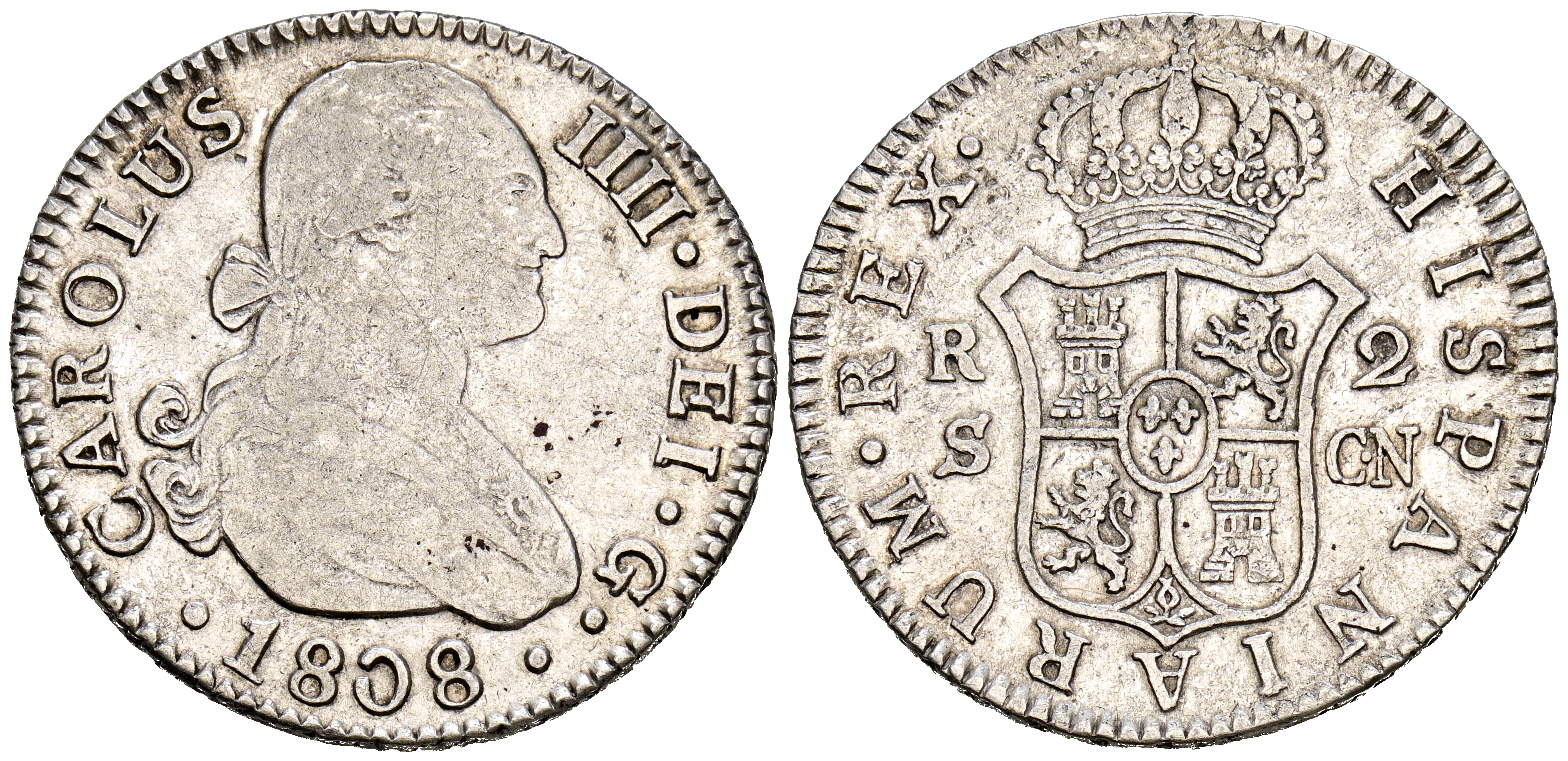 CARLOS IV (1788-1808). 2 Reales. (Ar. 5,84g/27mm). 1808. Sevilla CN. (Cal-2019-722). MBC/MBC+.