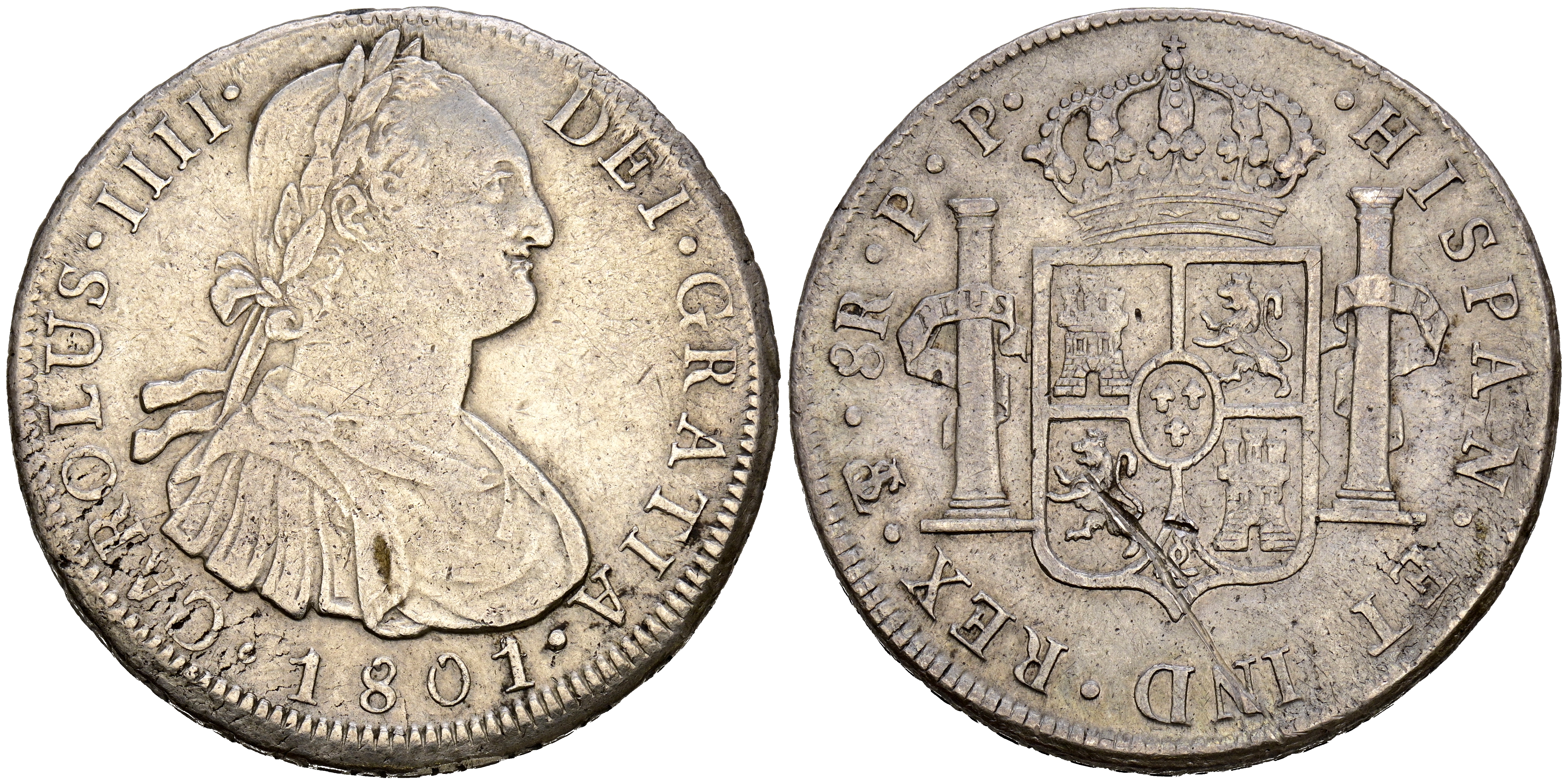 CARLOS IV (1788-1808). 8 Reales. (Ar. 26,83g/40mm). 1801. Potosí PP. (Cal-2019-1005). MBC.