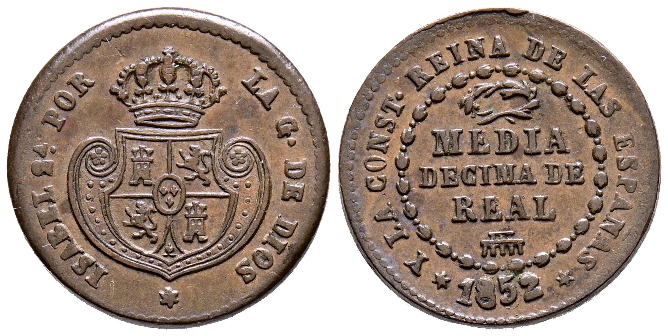 ISABEL II (1833-1868). 1/2 Décima de Real. (Ae. 1,87g/16mm). 1852. Segovia. (Cal-2019-139). MBC+.