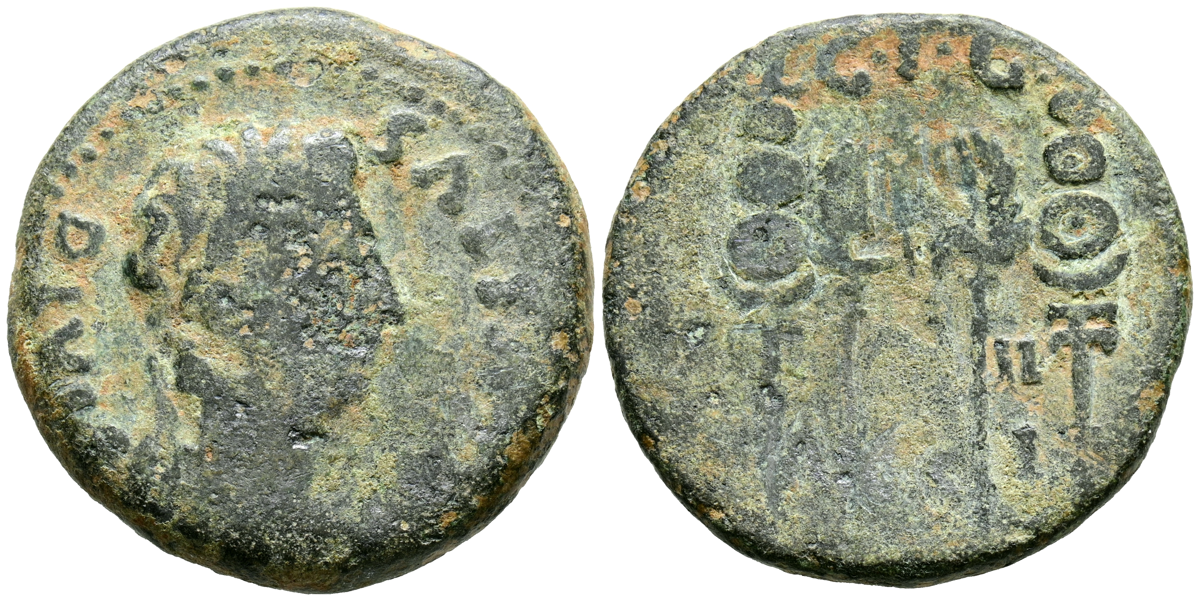ACCI (Guadix, Granada). As. (Ae. 13,00g/28mm). 27 a.C.-14 d.C. (FAB-34). Anv: Cabeza laureada de Augusto a derecha, alrededor leyenda: AVGVSTVS DIVI F. Rev: Dos águilas legionarias enfrentadas entre dos estandartes, encima: CIG, entre ellas leyenda: L I II/ACCI. MBC-.