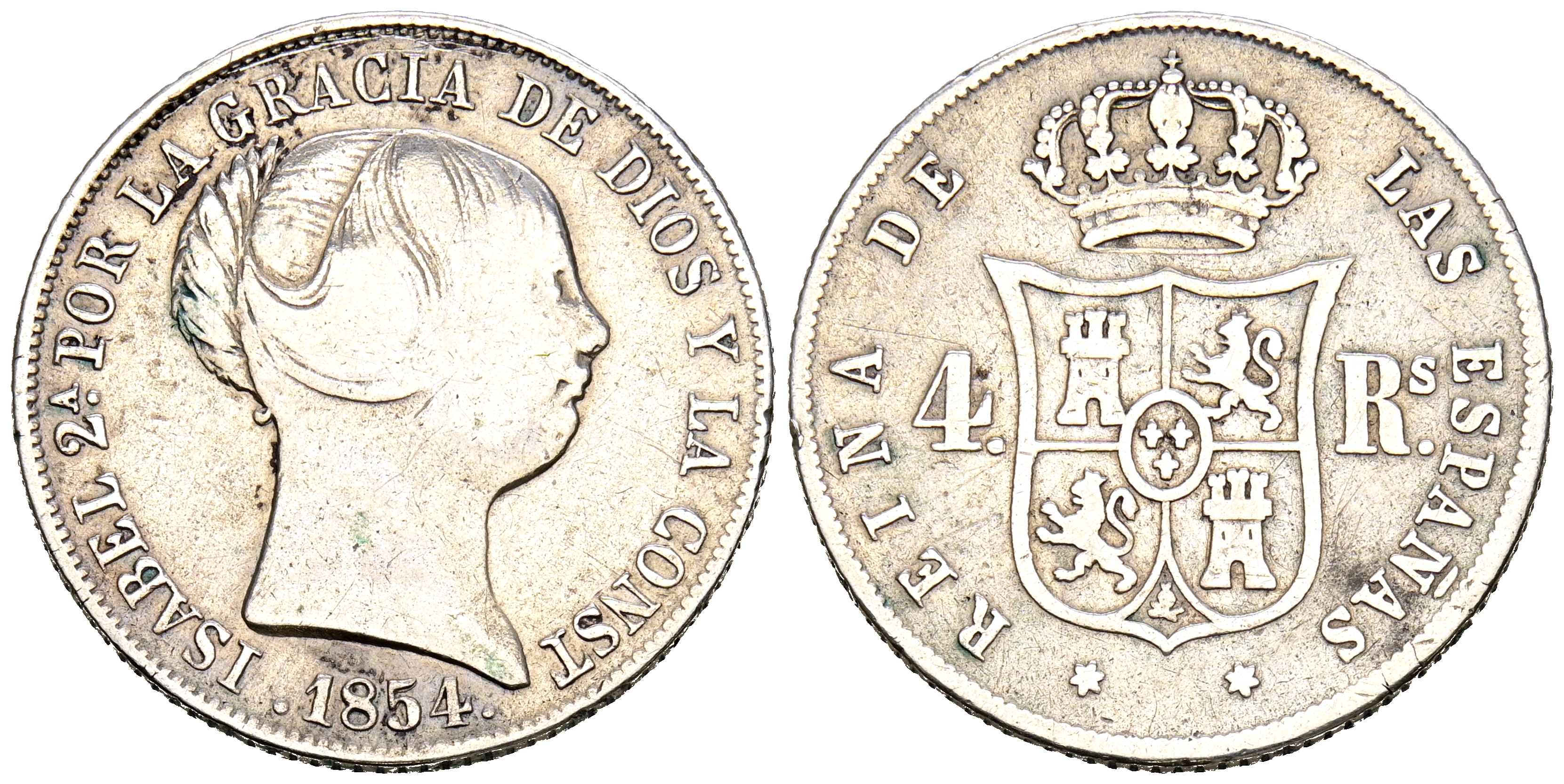 ISABEL II (1833-1868). 4 Reales. (Ar. 5,01g/23mm). 1854. Madrid. (Cal-2019-459). BC+.