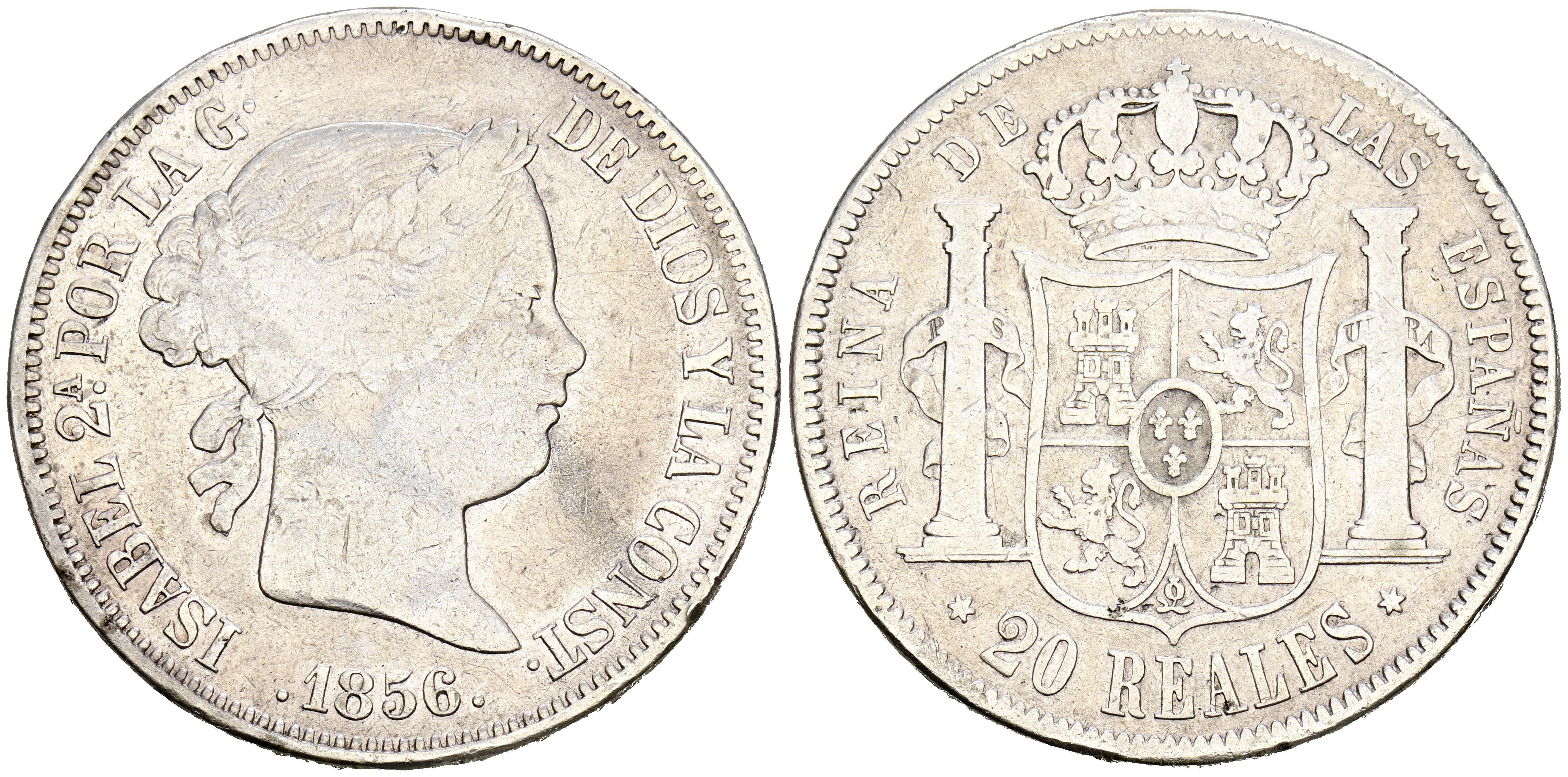 ISABEL II (1833-1868). 20 Reales (Ar. 25,56g/37mm). 1856. Madrid. (Cal-2019-612). BC+.