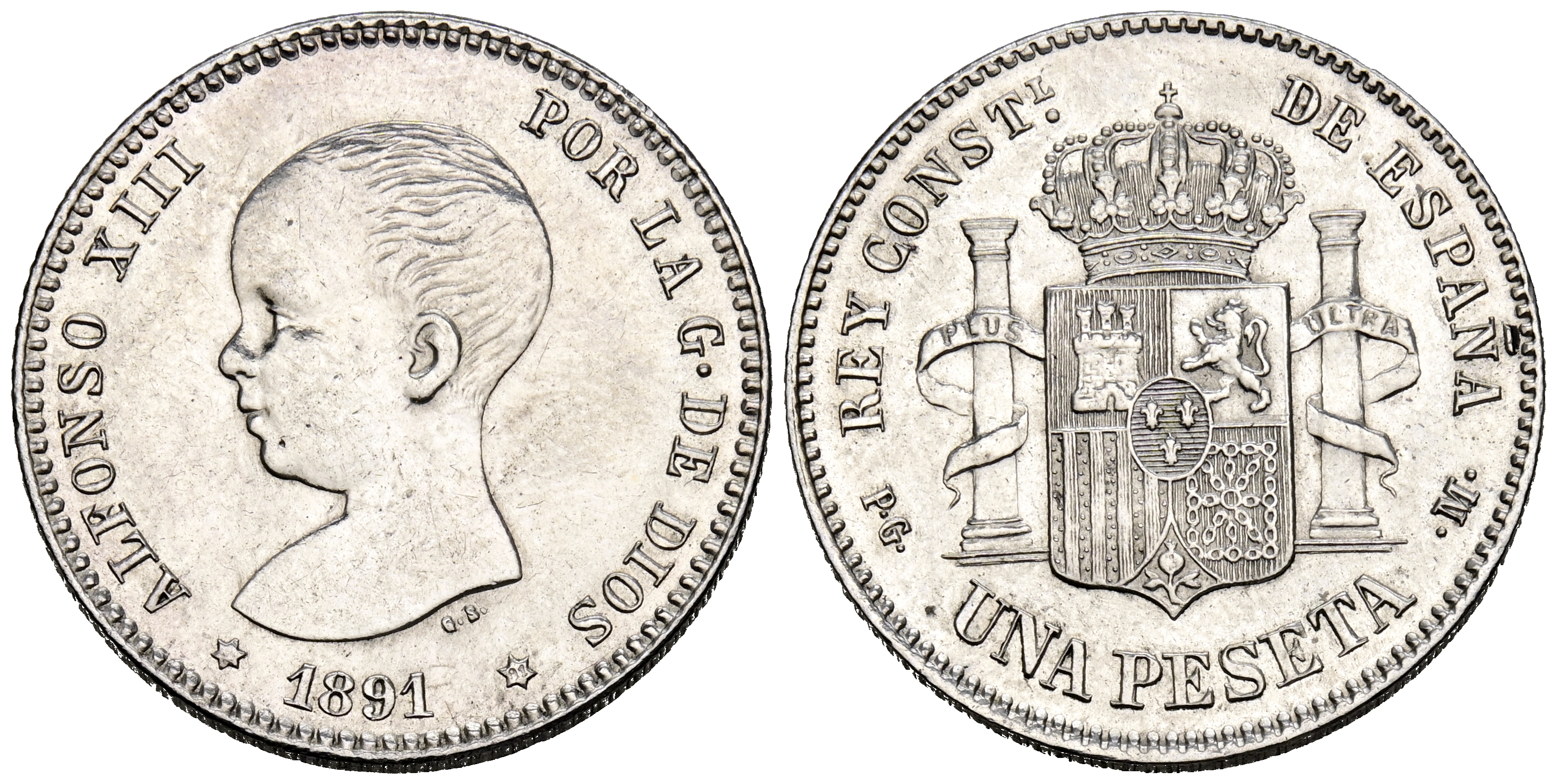 ALFONSO XIII (1885-1931). 1 Peseta. (Ar. 5,04g/23mm). 1891 *18-91. Madrid PGM. (Cal-2019-53). MBC+. Dígitos de la primera estrella no visibles. Abrillantada.