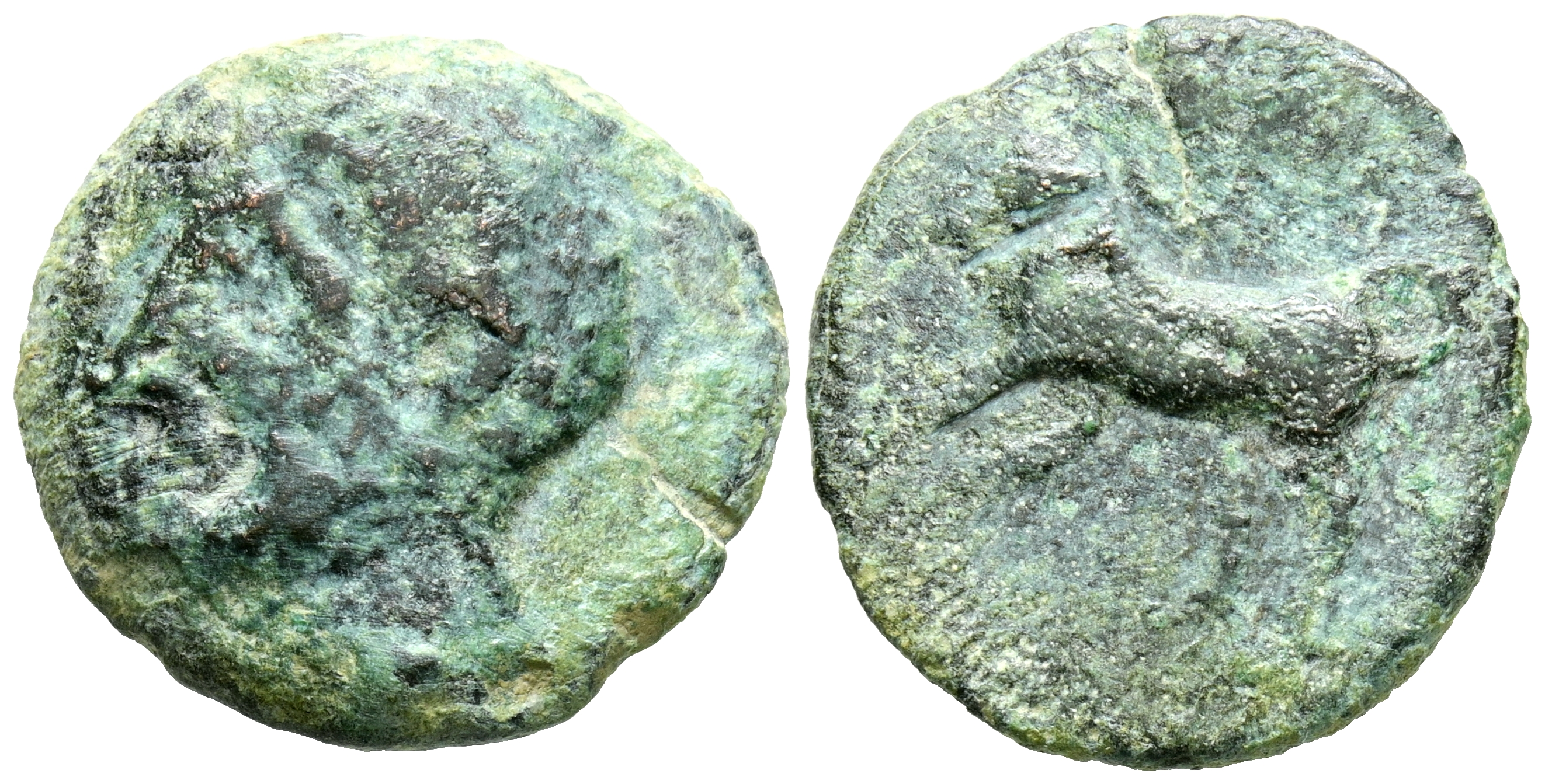 ASIDO (Medina Sidonia, Cádiz). As. (Ae. 4,68g/19mm). 50 a.C. (FAB-164). Anv: Cabeza masculina a izquierda. Rev: Toro a izquierda, encima creciente. RC.