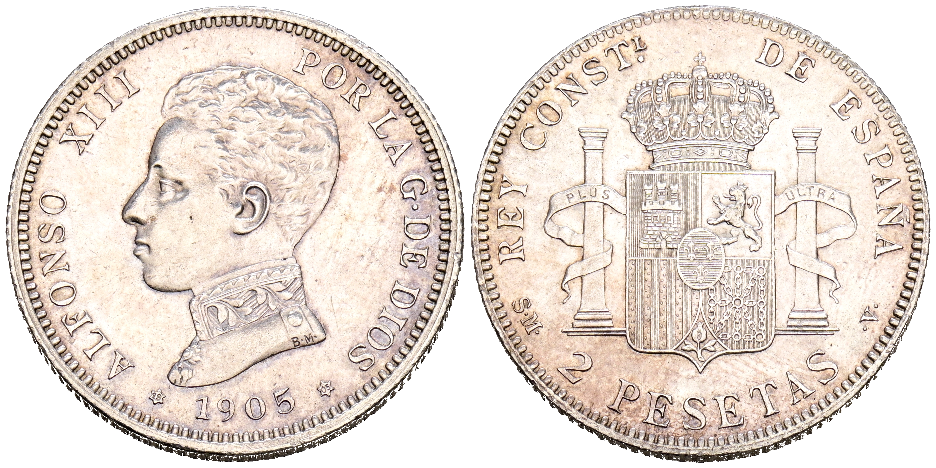 ALFONSO XIII (1885-1931). 2 Pesetas. (Ar. 9,94g/27mm). 1905 *19-05. Madrid SMV. (Cal-2019-88). EBC+. Brillo original.