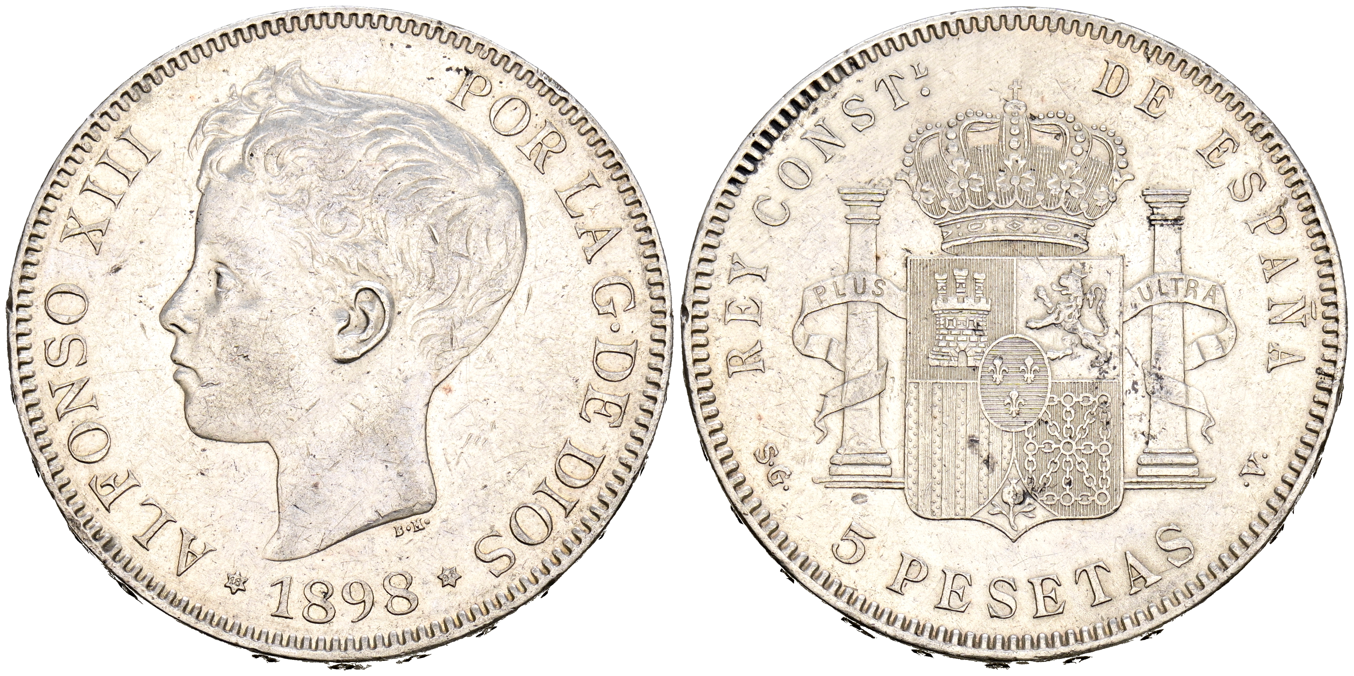 ALFONSO XIII (1885-1931). 5 Pesetas. (Ar. 25,08g/37mm). 1898 *18-98. Madrid SGV. (Cal-2019-109). EBC-.