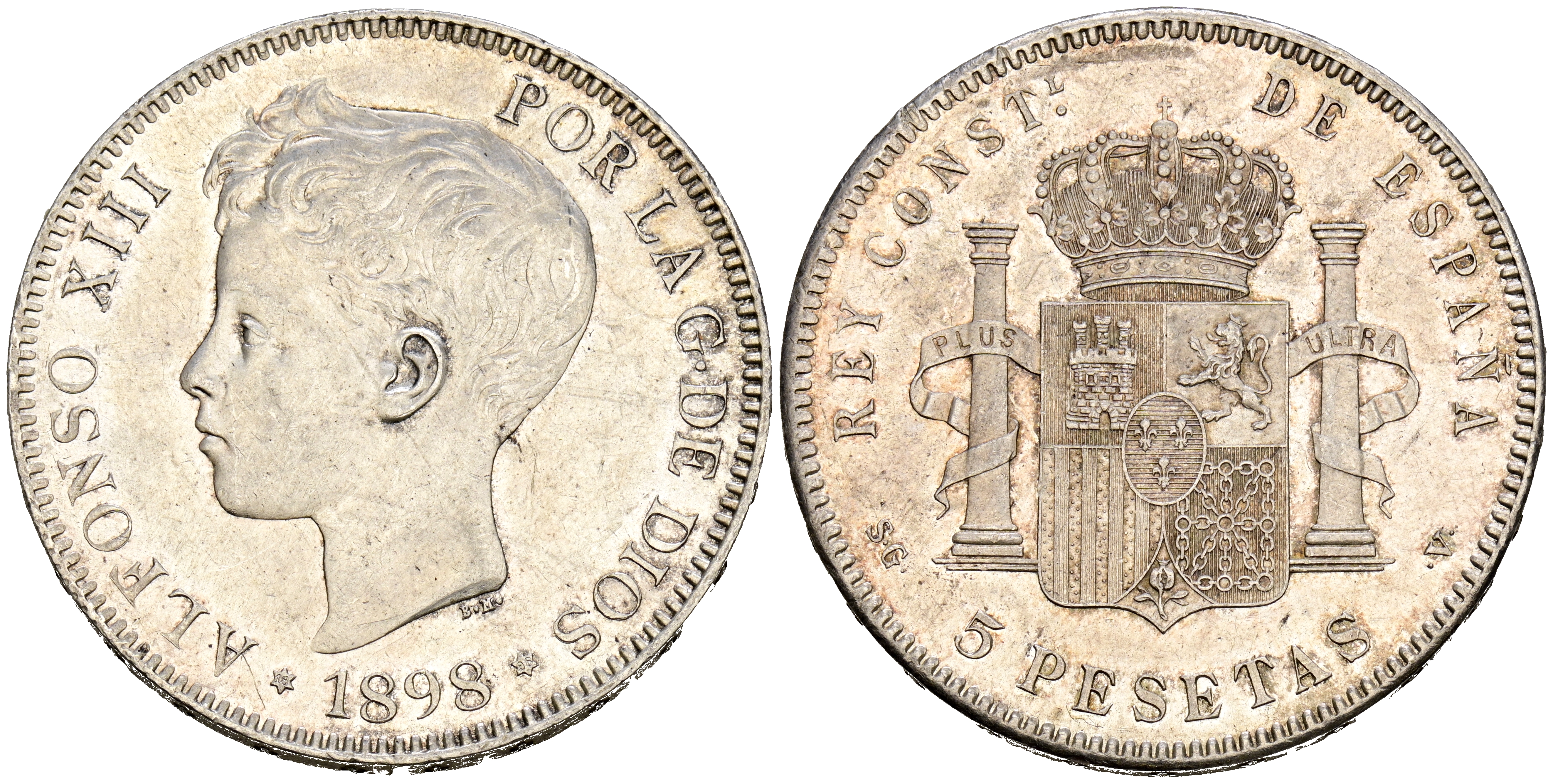 ALFONSO XIII (1885-1931). 5 Pesetas. (Ar. 24,80g/37mm). 1898 *18-98. Madrid SGV. (Cal-2019-109). MBC+/EBC-.