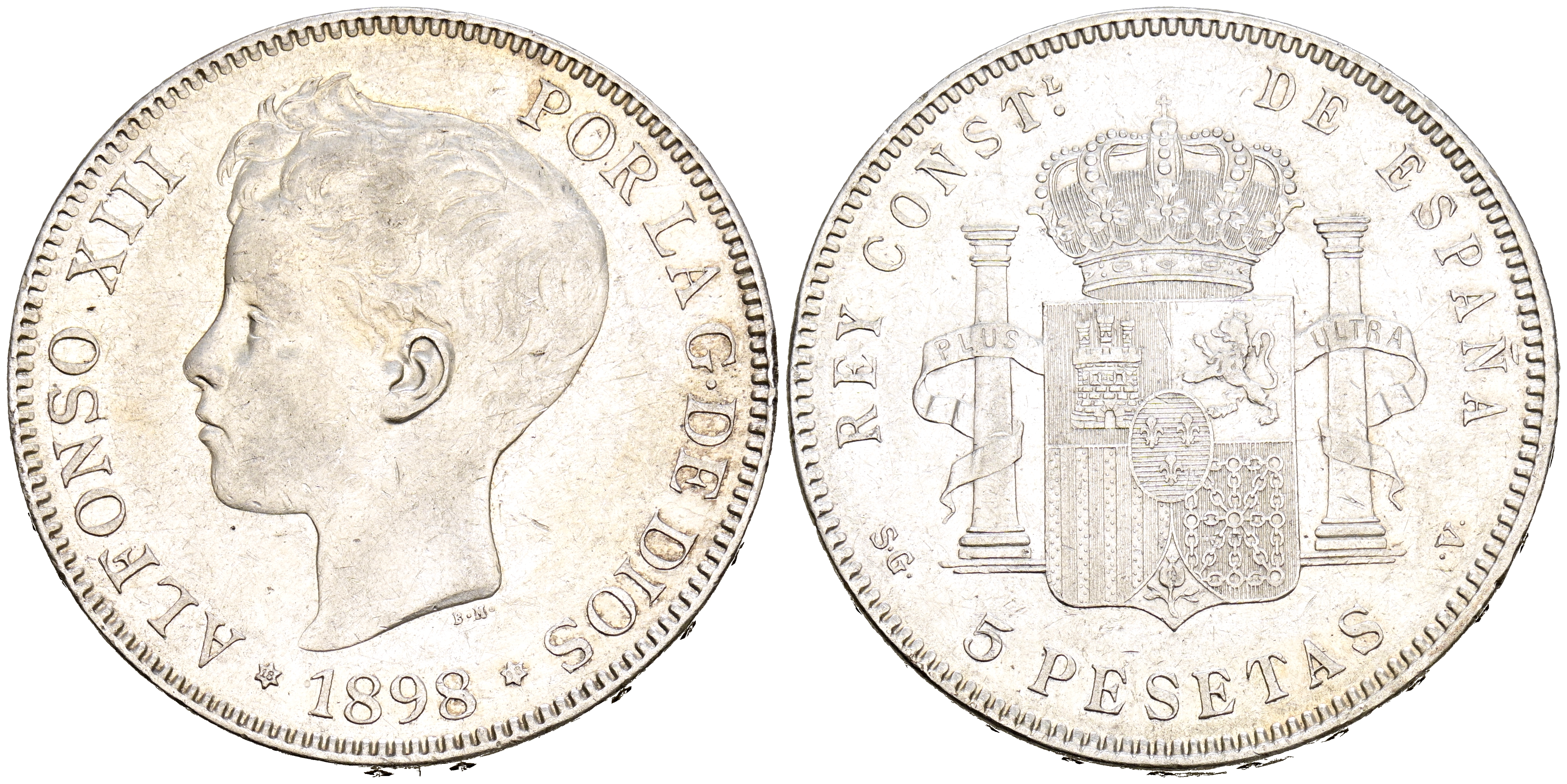 ALFONSO XIII (1885-1931). 5 Pesetas. (Ar. 24,83g/37mm). 1898 *18-98. Madrid SGV. (Cal-2019-109). MBC+.