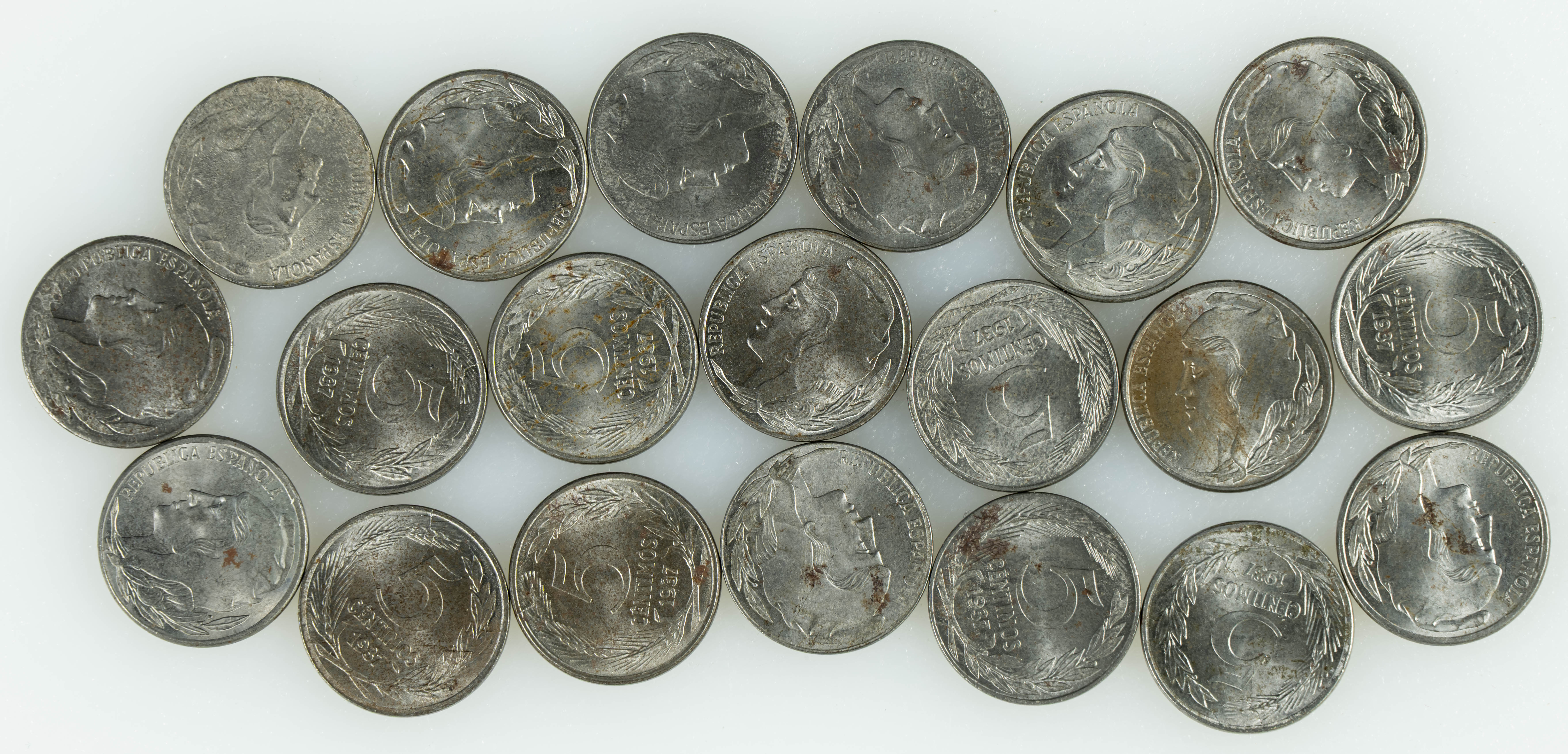 II REPÚBLICA (1931-1939). Conjunto de 20 monedas de 5 Céntimos. 1937. Nivel de conservación medio alto de todo el conjunto. A EXAMINAR.