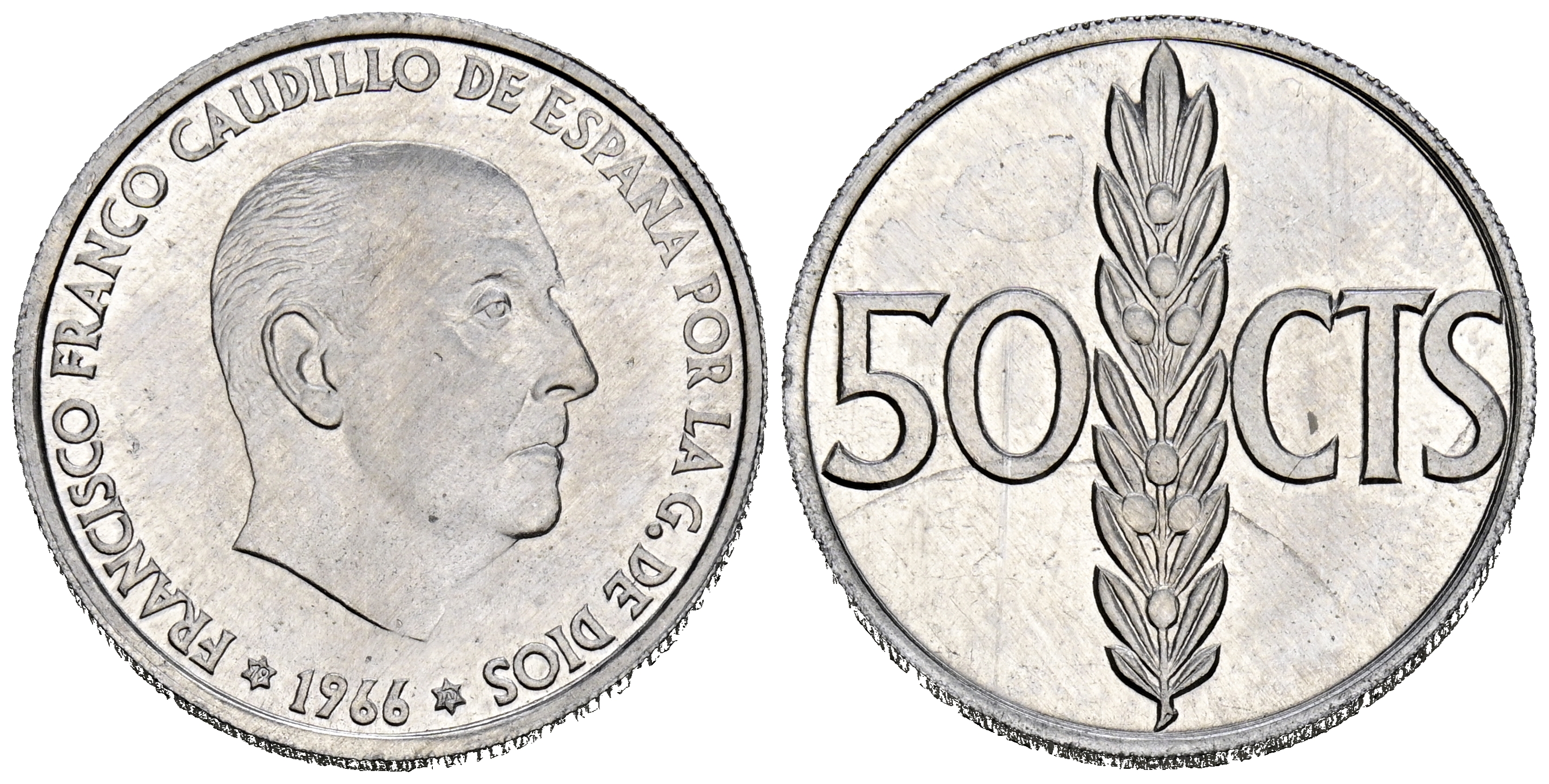 ESTADO ESPAÑOL (1936-1975). 50 Céntimos. (Al. 0,97g/20mm). 1966 *19-70. Madrid. (Cal-2019-34). SC-. Extraída de tira. Escasa.