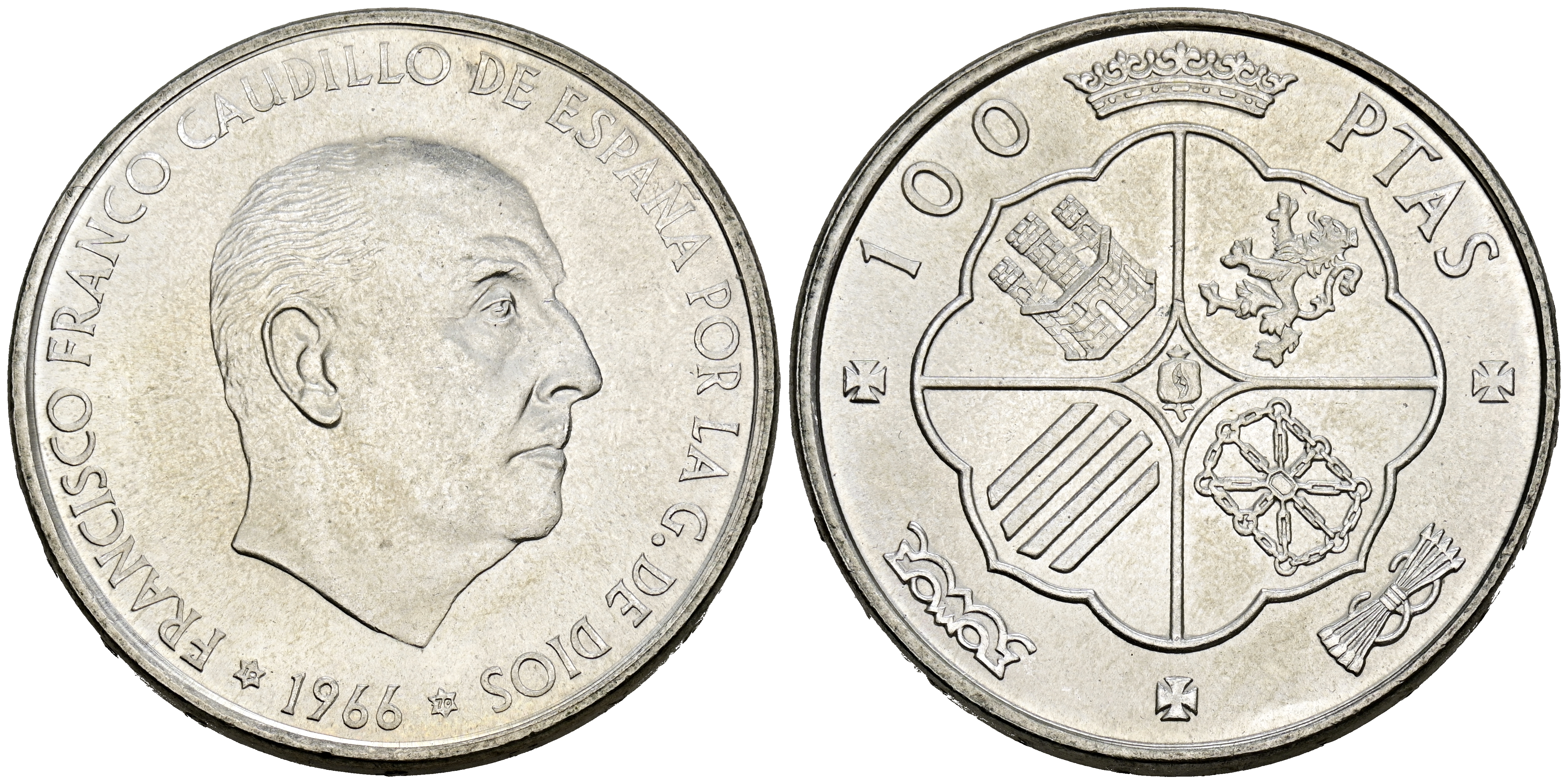 ESTADO ESPAÑOL (1936-1975). 100 Pesetas. (Ar. 19,12g/34mm). 1966 *19-70. Madrid. (Cal-2019-150). SC. Extraída de tira.